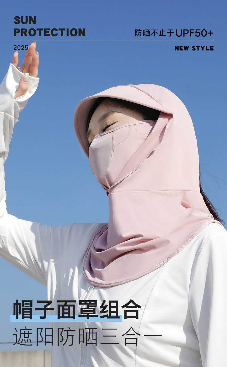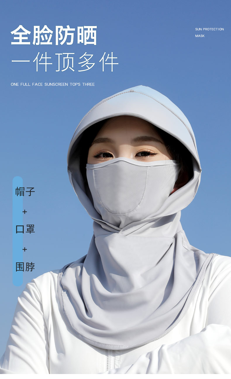 태양 모자 남성과 여성의 여름 안티 UV 승마 얼굴 커버 아이스 실크 태양 보호 모자 및 마스크 통합 목 보호