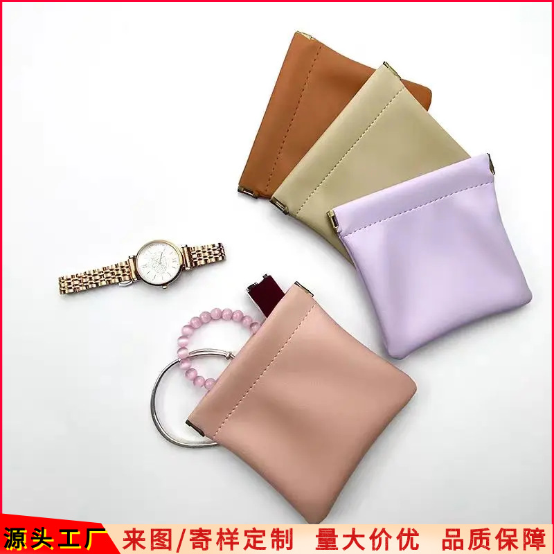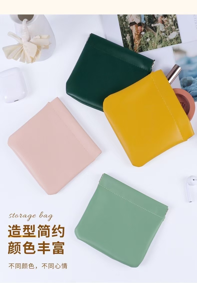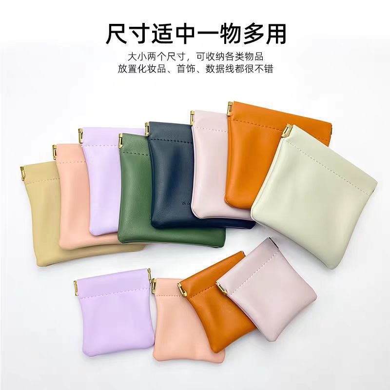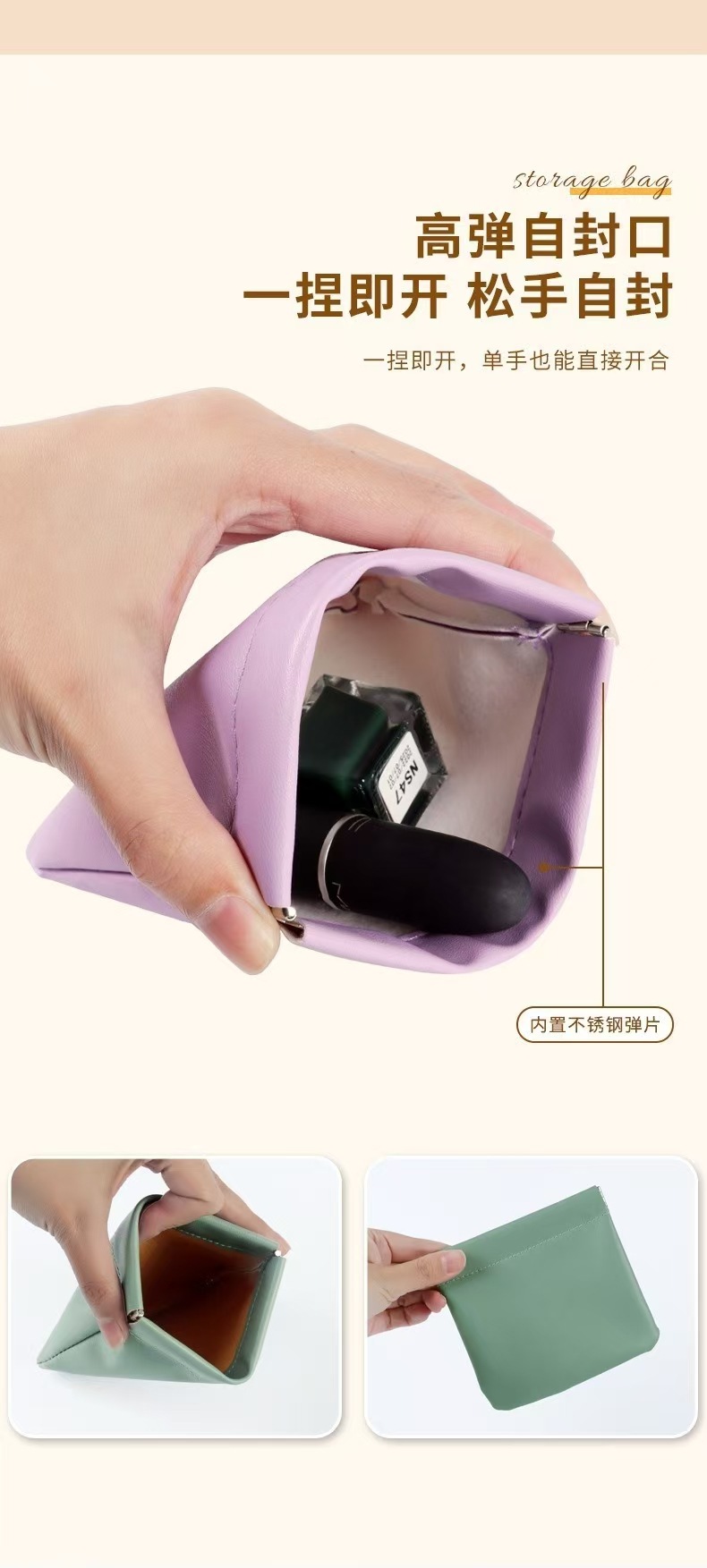 가죽 자동 잠금 립스틱 화장품 가방 미니 휴대용 이어폰 데이터 케이블 수납 가방 동전 지갑