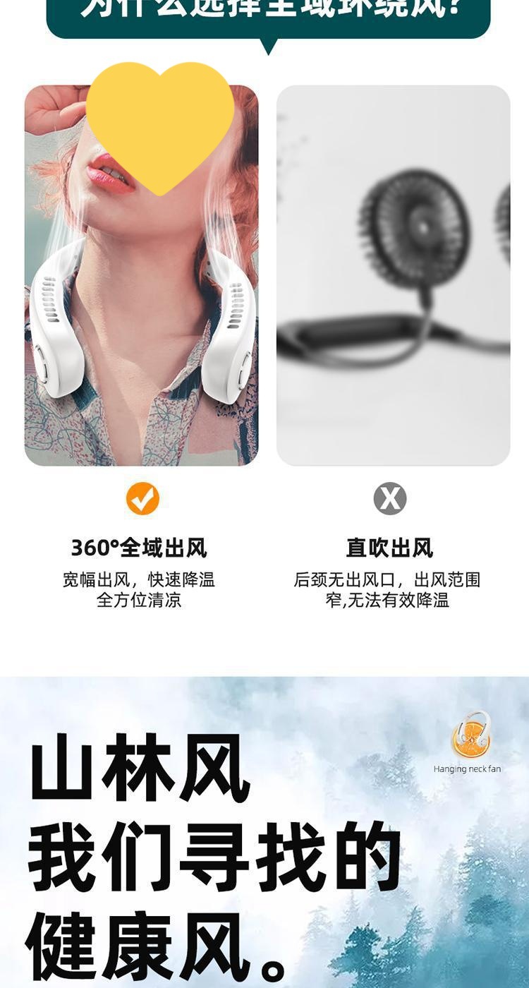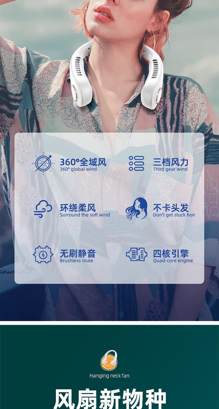 2024 새로운 목 교수형 작은 팬 휴대용 음소거 목 매달려 전기 팬 지구력 휴대용 냉동