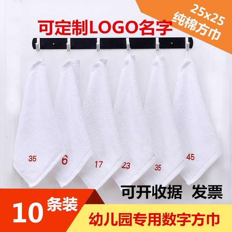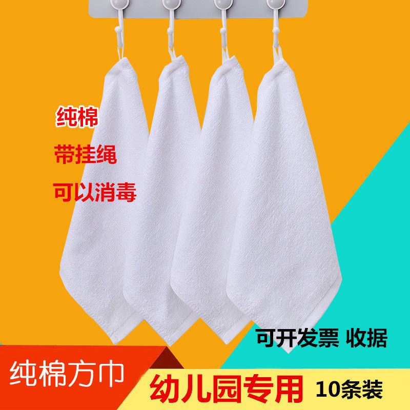유치원 수건 화이트 코튼 작은 사각형 수건 끈 후크 흡수성 닦아 얼굴 입 타액 수건스토어 가기