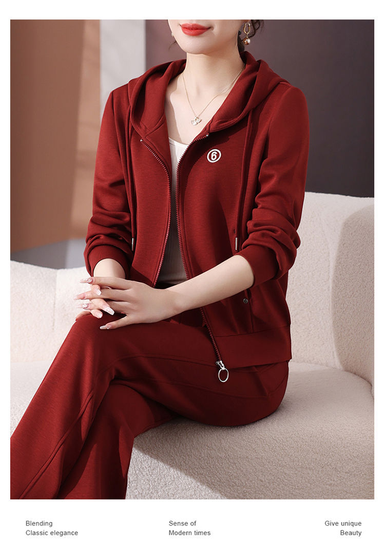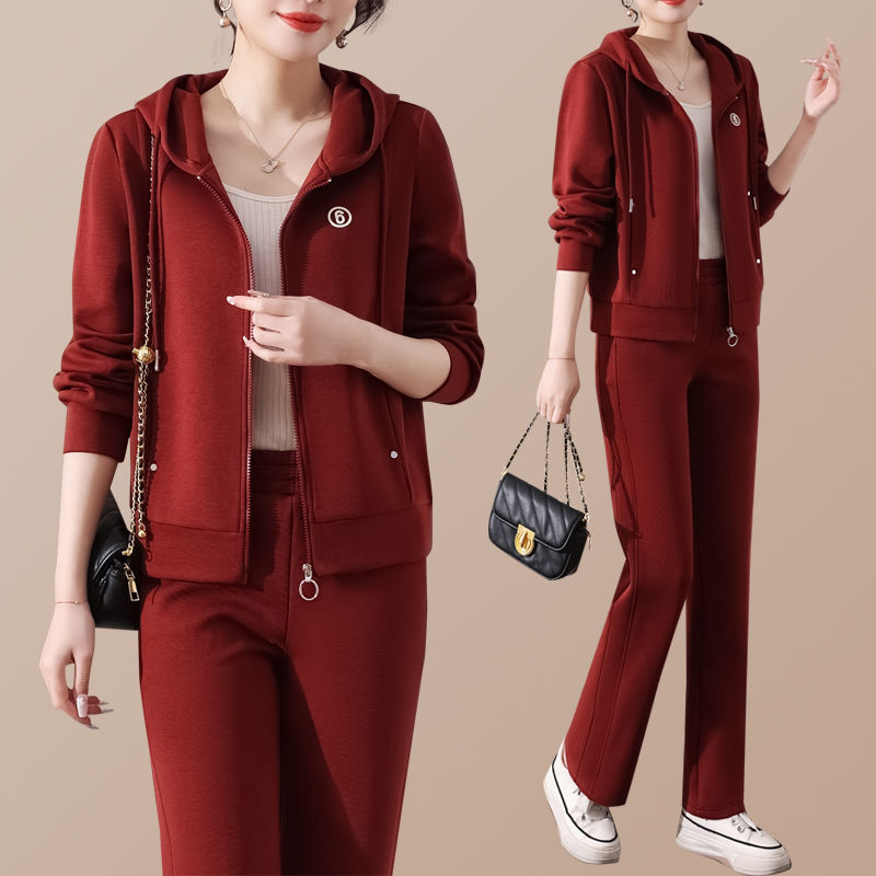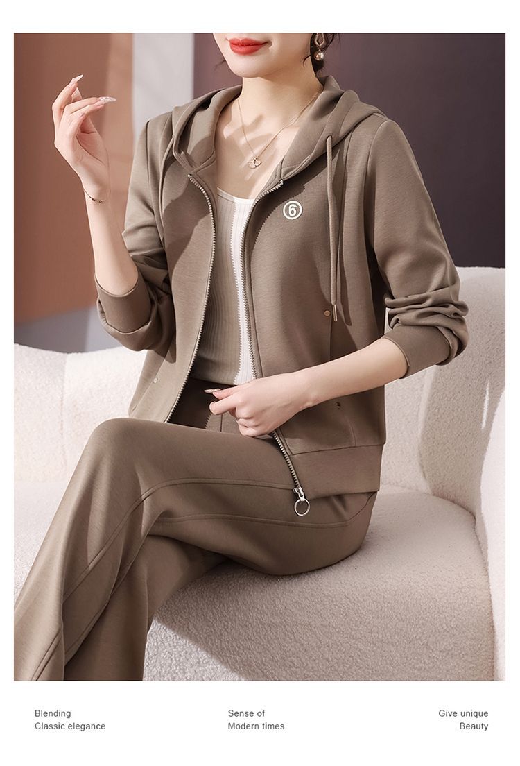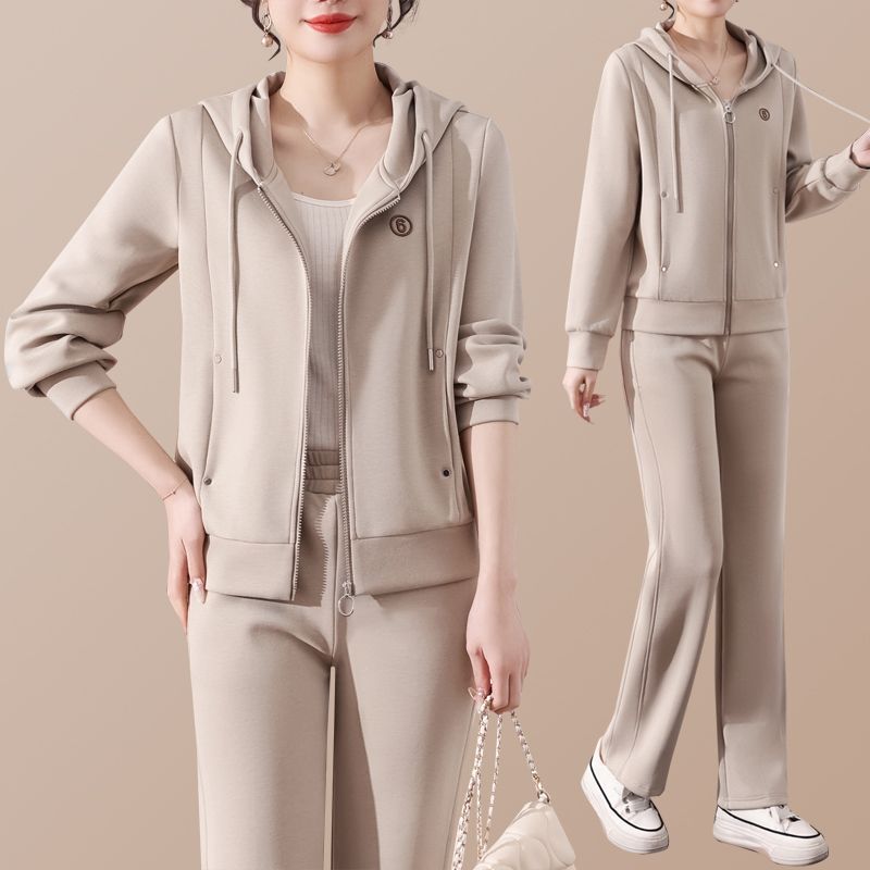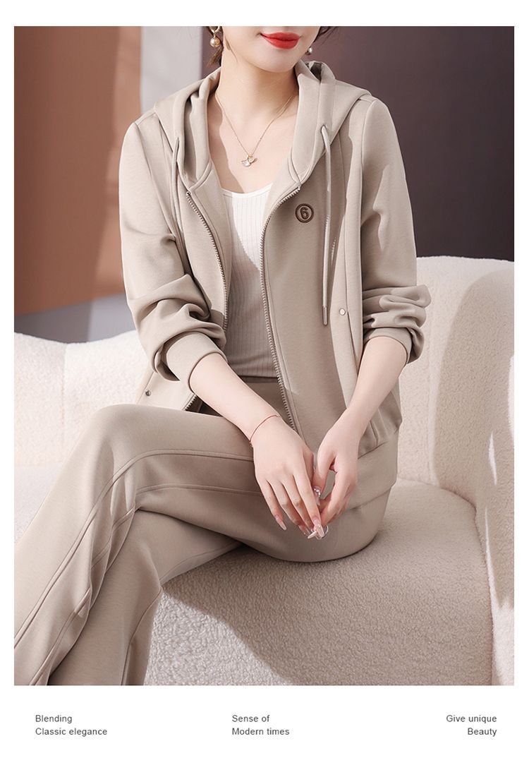 후드 패션 젊은 어머니 하이 엔드 스웨터 캐주얼 투피스 봄 스포츠웨어 세트 여성의 2025 새로운