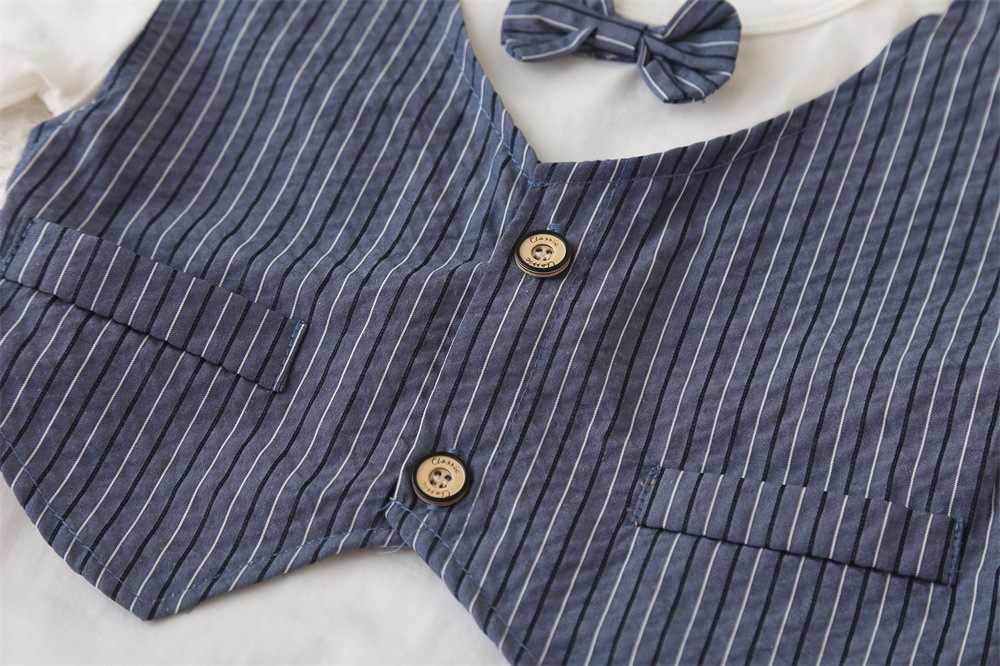 • jh 세로 스트라이프 보타이 조끼 반팔 슈트 네이비 블루