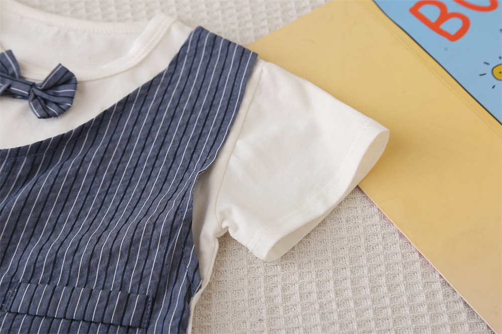 2025 년 여름 새 한국식 아동복 소년 활넥타이 조끼 반팔 투피스 어린이 세트 여름 유행 머리스토어 가기