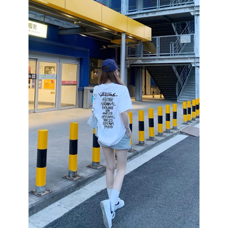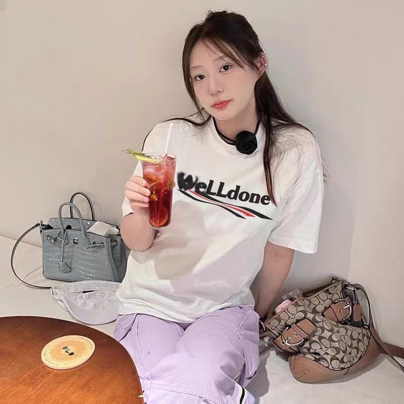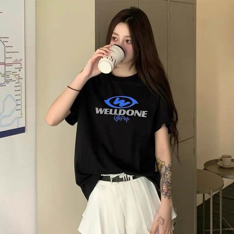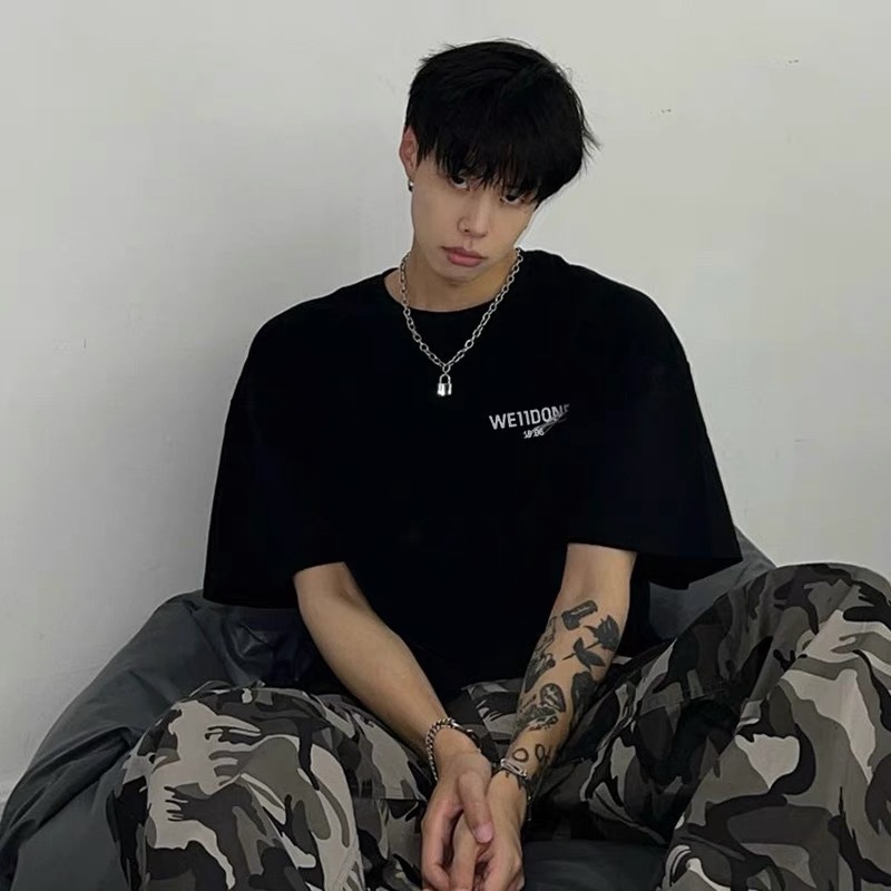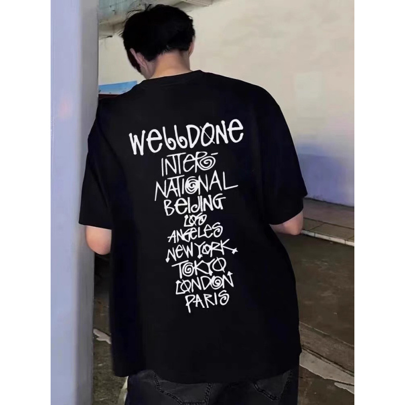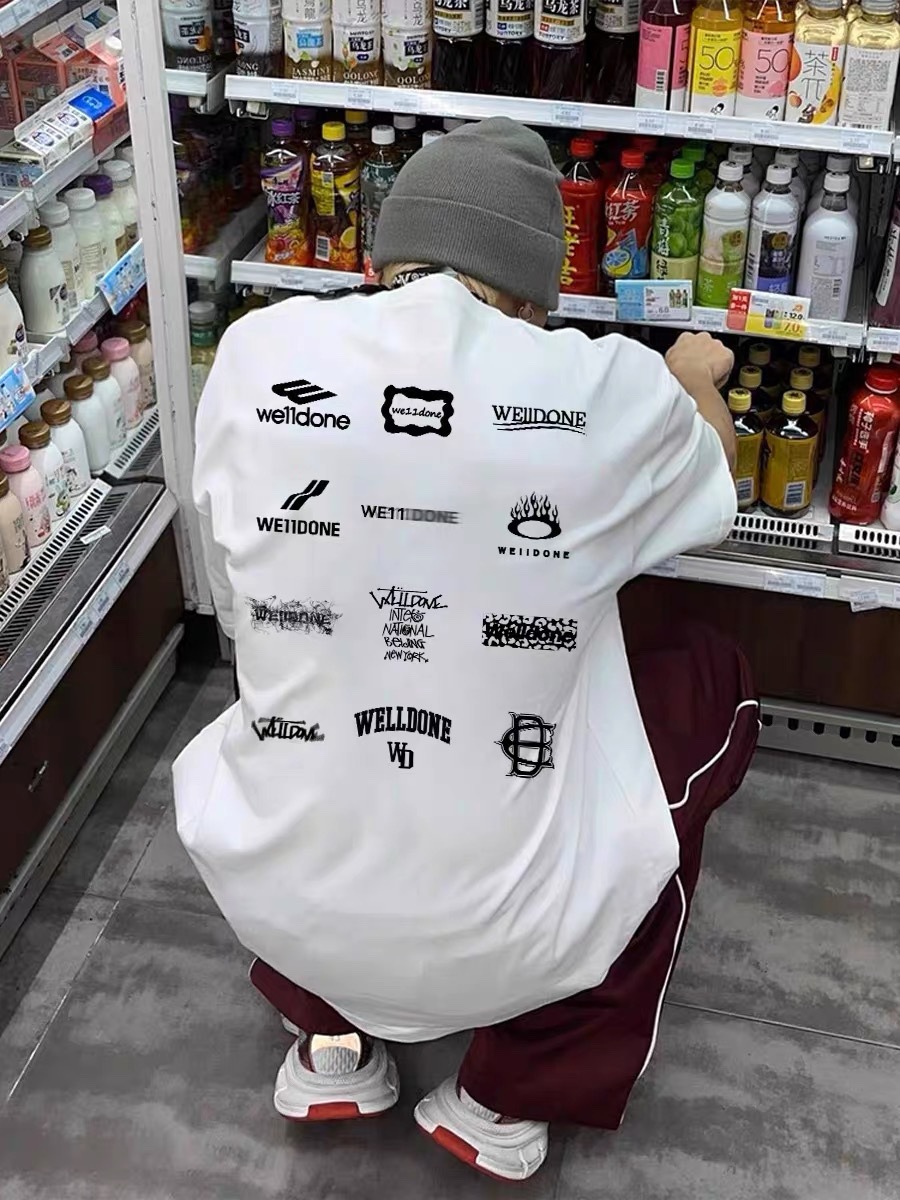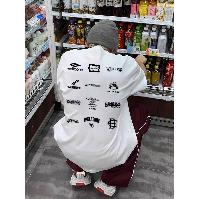 WELLDONE 트렌디 한 새로운 도착 기술 반소매 서양 패션 브랜드 인쇄 반팔 여름 하이 스트리트 느슨한 커플 티셔츠스토어 가기