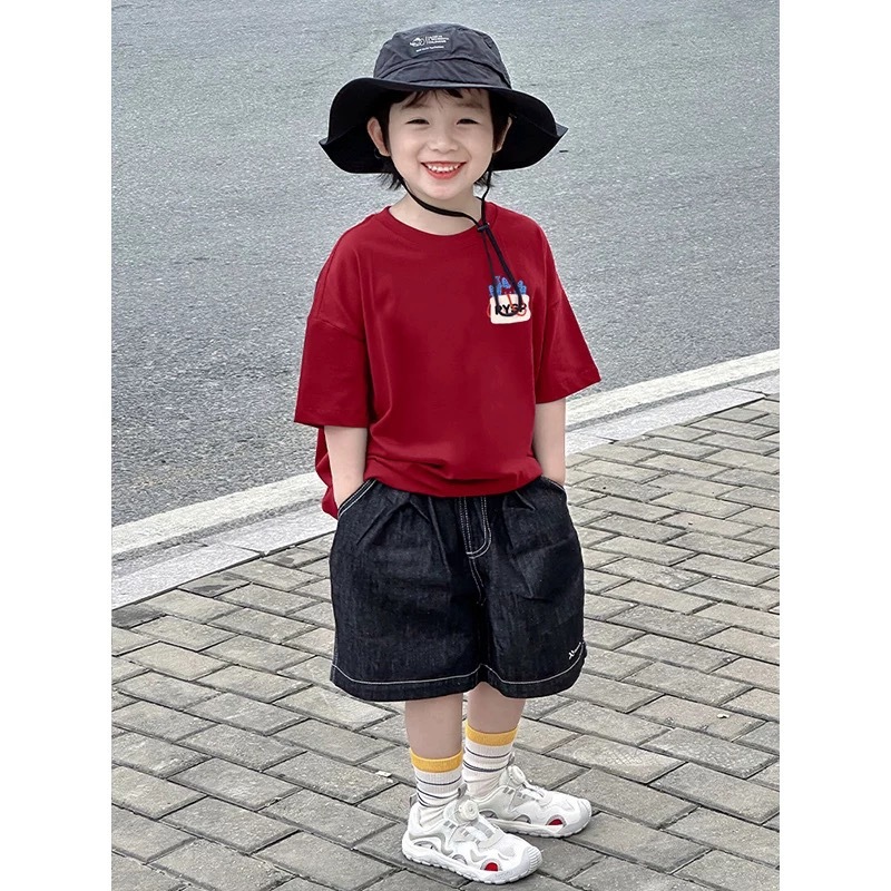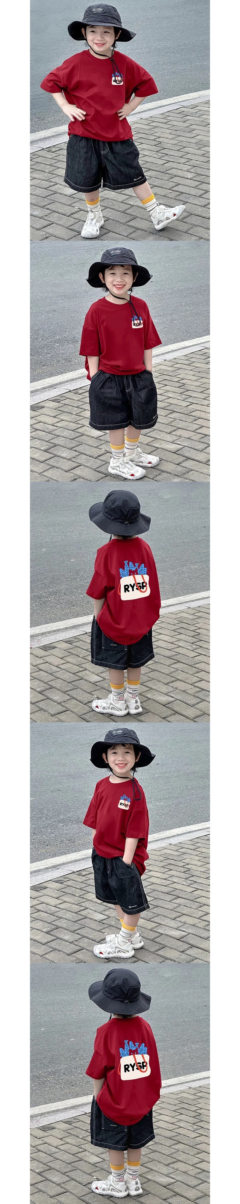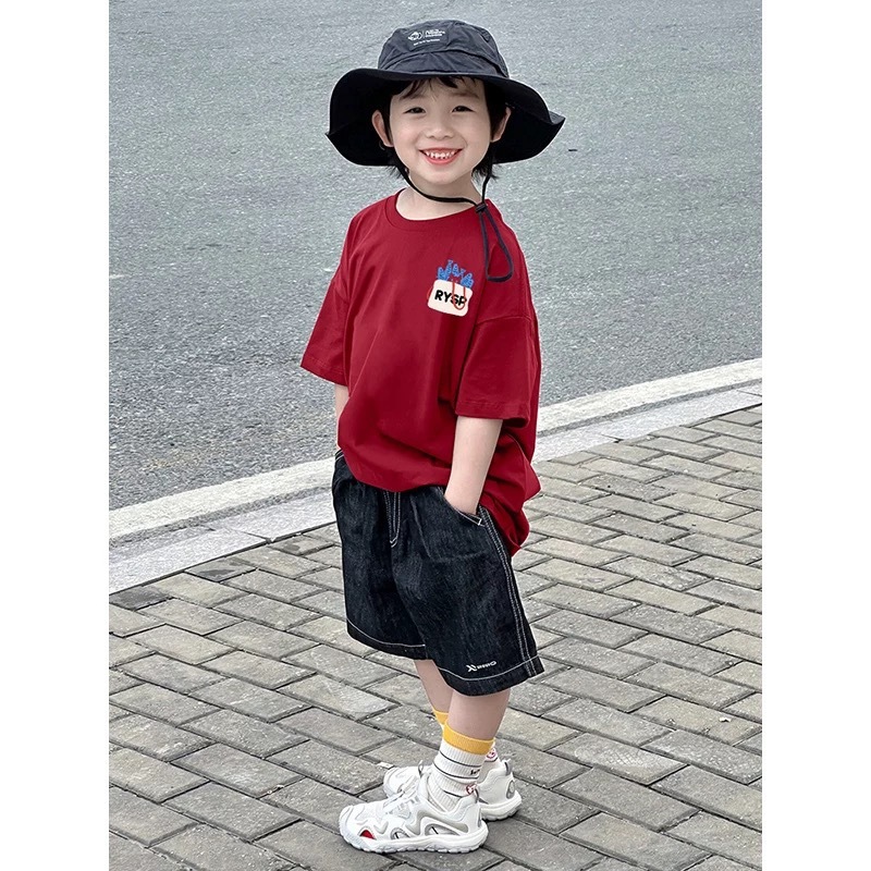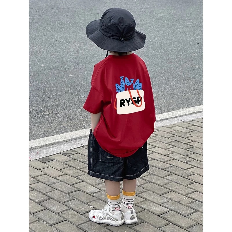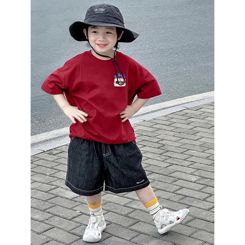 2025 새로운 소녀 소년 여름 면화 짧은 소매 새로운 인쇄 아동복 어린이 올 매치 웨스턴 스타일 탑스토어 가기