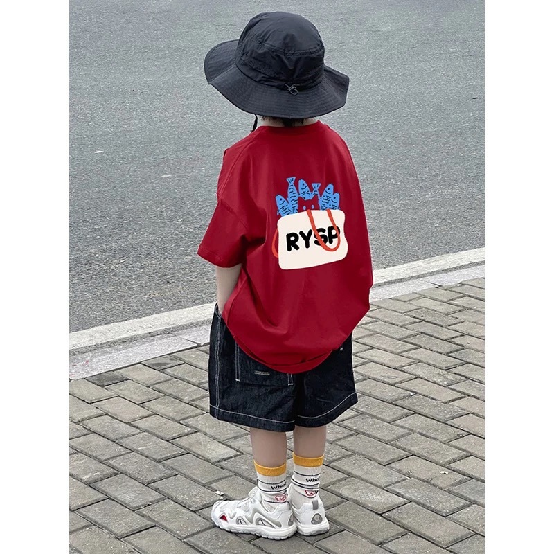 2025 새로운 소녀 소년 여름 면화 짧은 소매 새로운 인쇄 아동복 어린이 올 매치 웨스턴 스타일 탑