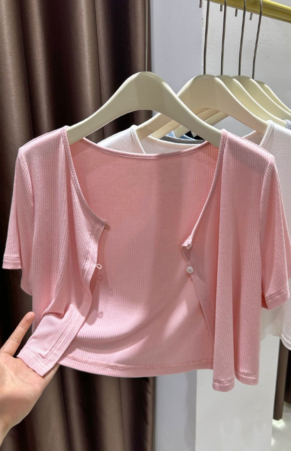 모달 반팔 목도리 선스크린 의류 여성의 여름 외부 스레드 니트 카디건 재킷 얇은 느슨한 블라우스 탑