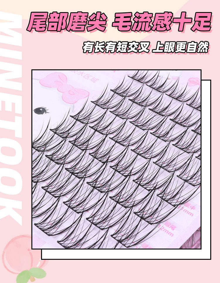 온 더 미러 새 가짜 속눈썹 단일 클러스터 한국 여성 그룹 속눈썹 분절 된 뿌리 구별