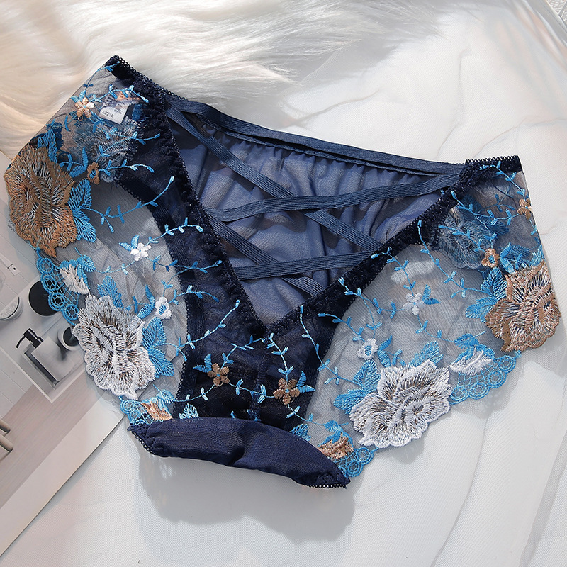 일본 섹시한 속옷 여성용 자수 레이스 리어 크로스 벨트 할로우 통기성 자카드 코튼 크로트 트라이앵글