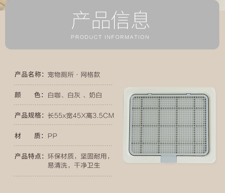 • 흰색과 회색 메쉬 개 화장실 55X45X3.5CM