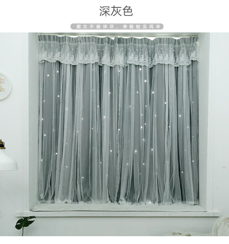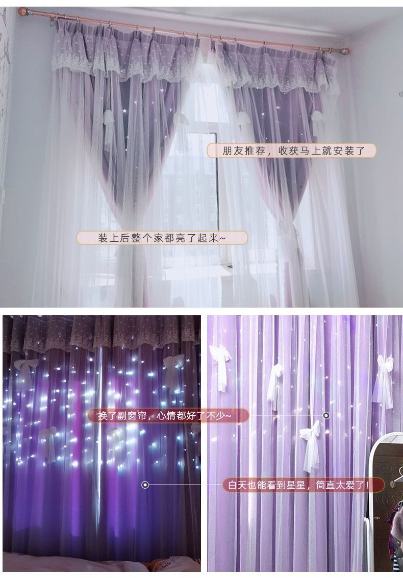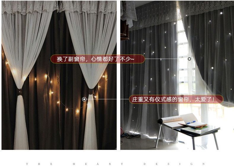 인터넷-유명한 완성 된 커튼 공주 스타일 쉐이딩 침실 중공 스타 플로팅 커튼 펀치 프리 커튼스토어 가기