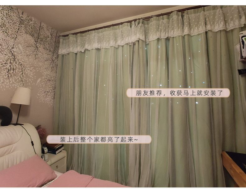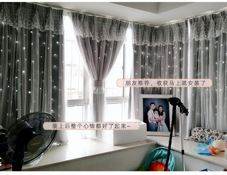 인터넷-유명한 완성 된 커튼 공주 스타일 쉐이딩 침실 중공 스타 플로팅 커튼 펀치 프리 커튼