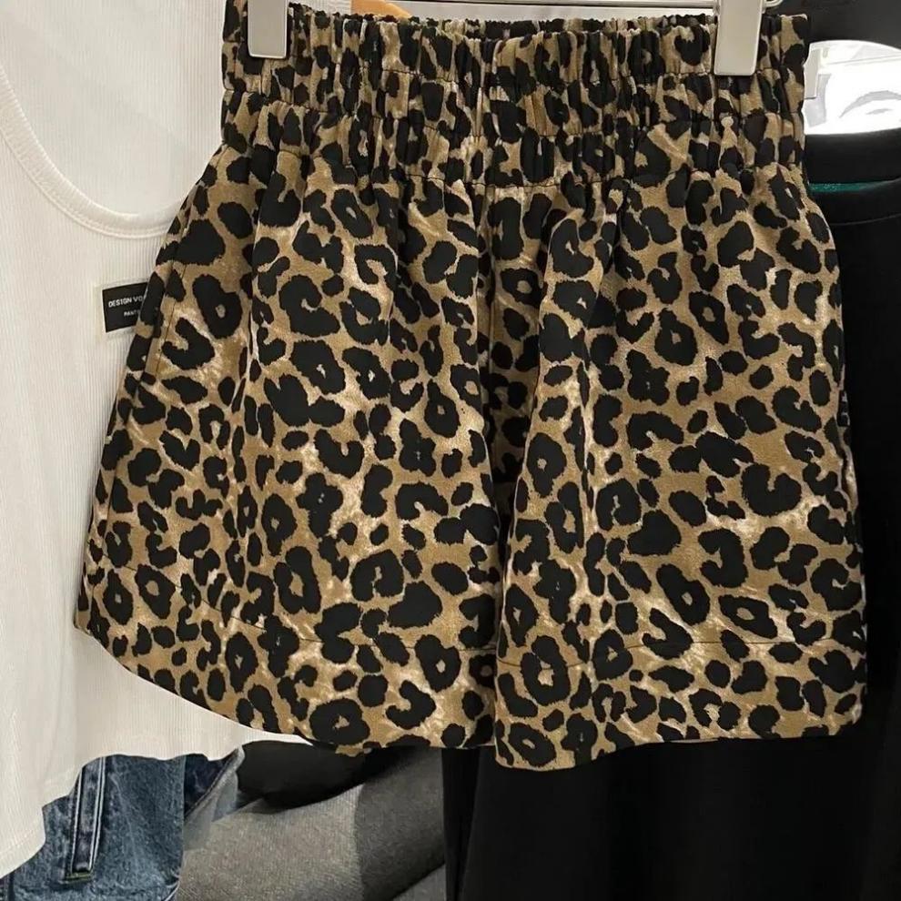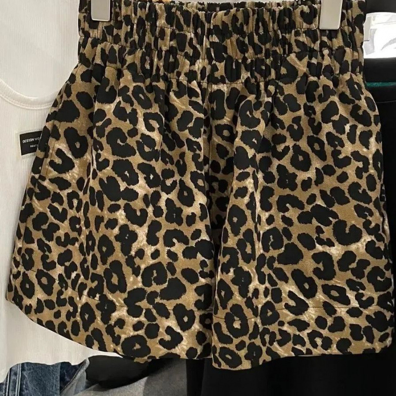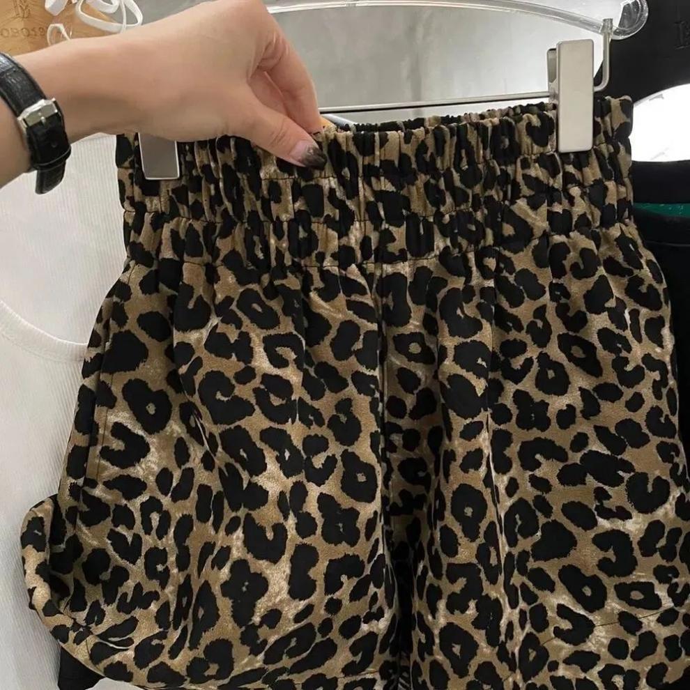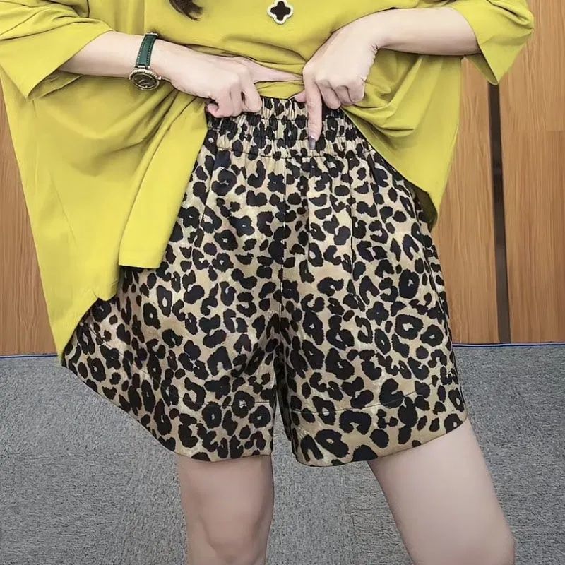 5 포인트 반바지 여성 패션 레오파드 무늬 2024 여름 새로운 캐주얼 트렌디 높은 허리 슬리밍 바지 넓은 다리 바지 캐주얼스토어 가기