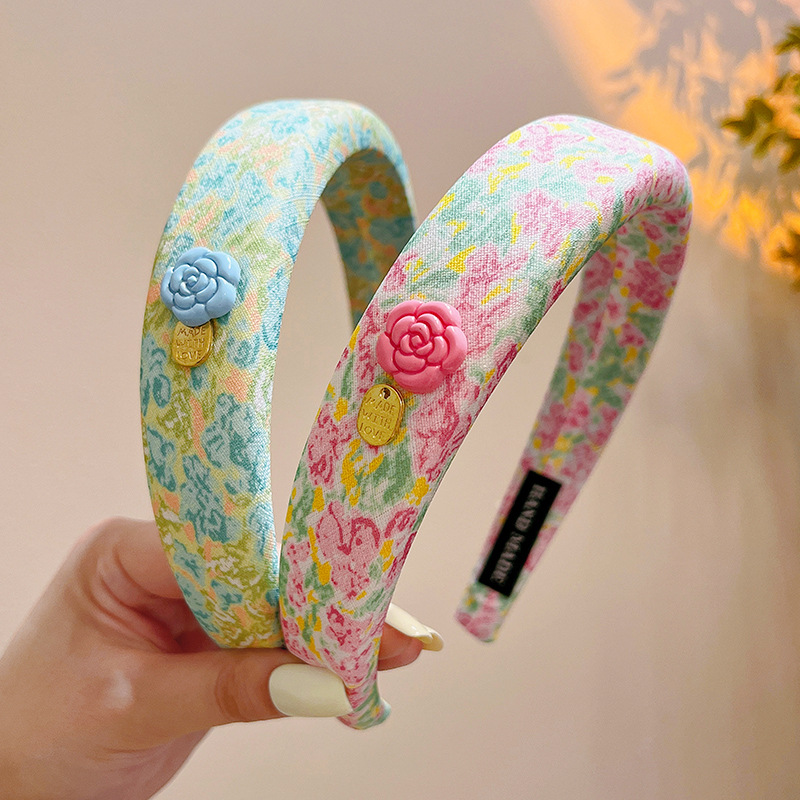 2025 새로운 프랑스 스타일 꽃 머리띠 여성 높은 두개골 탑 스폰지 머리띠 이른 봄 고급 유화 동백 머리 액세서리스토어 가기