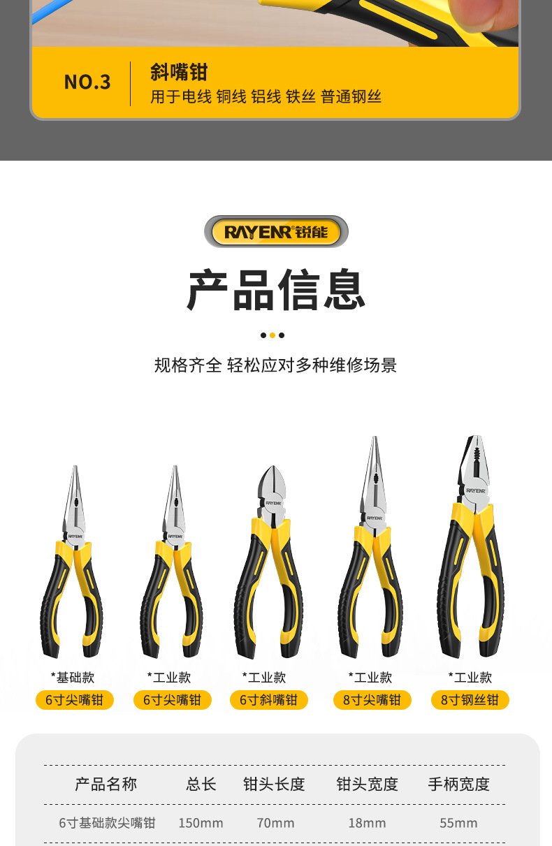 • 플래그십 모델 6inch 바늘코 펜치
