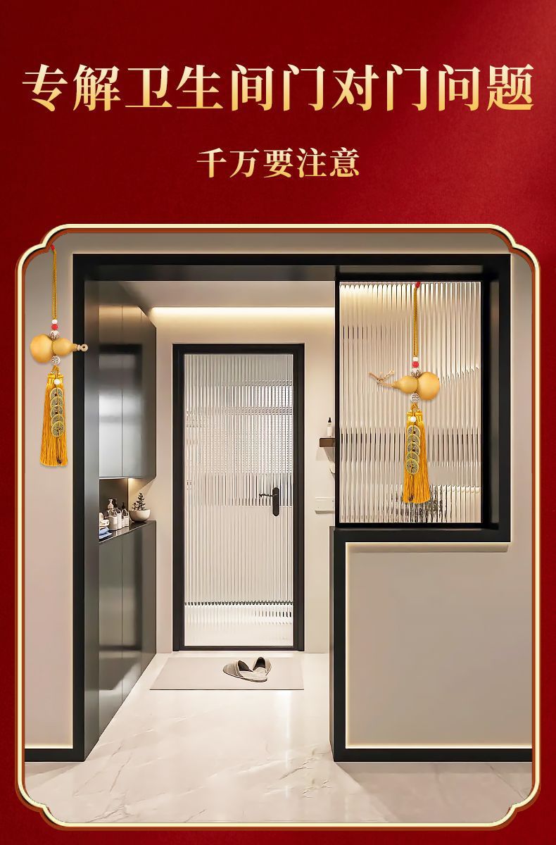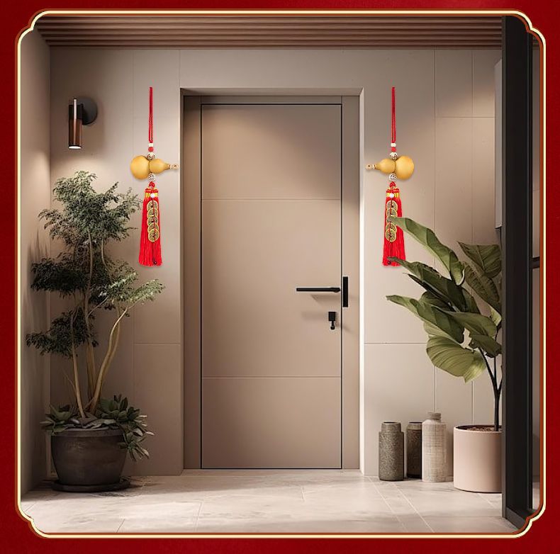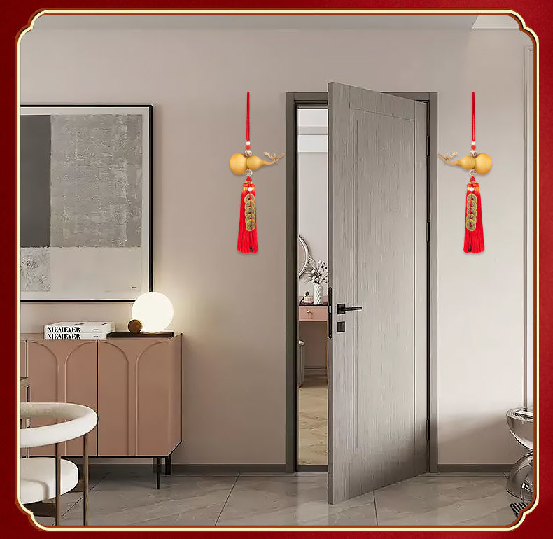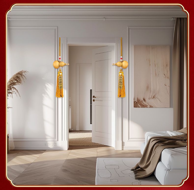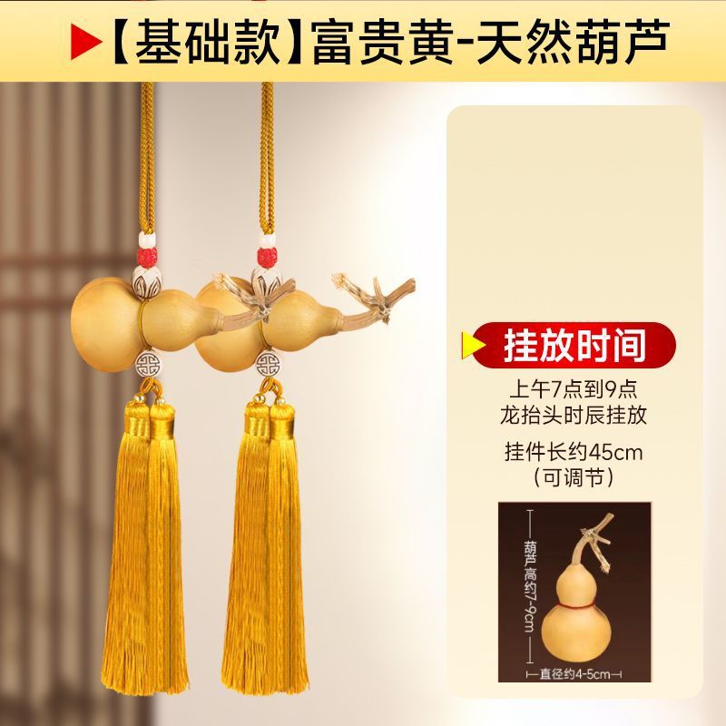 드래곤 헤드 천연 나무 조롱박 입, 연꽃 문 노란색 로프 펜던트 순수한 구리 5 황제 돈 화장실 거실 부엌