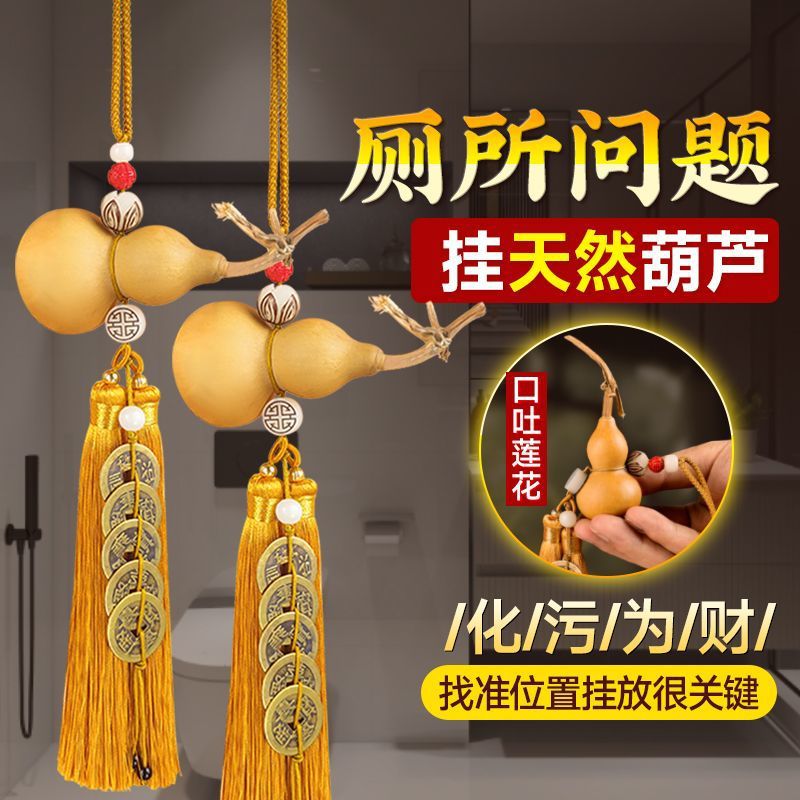 드래곤 헤드 천연 나무 조롱박 입, 연꽃 문 노란색 로프 펜던트 순수한 구리 5 황제 돈 화장실 거실 부엌스토어 가기