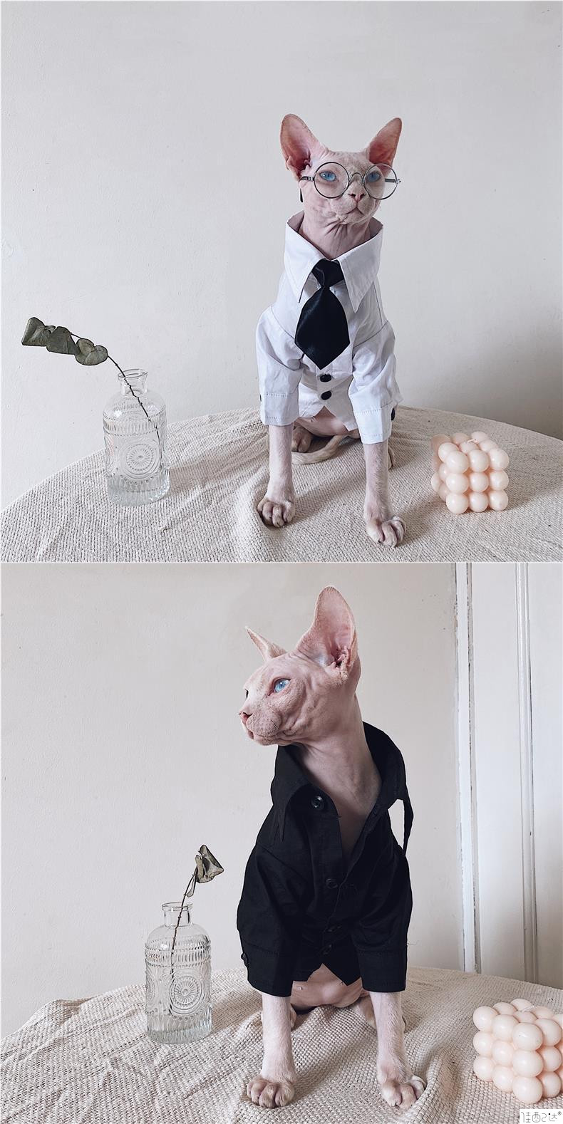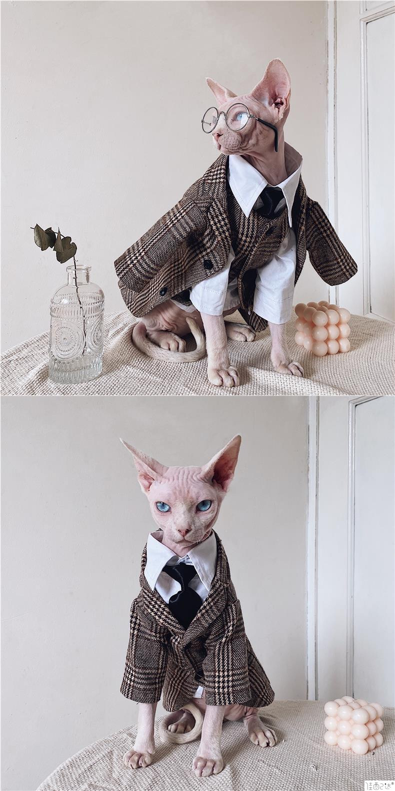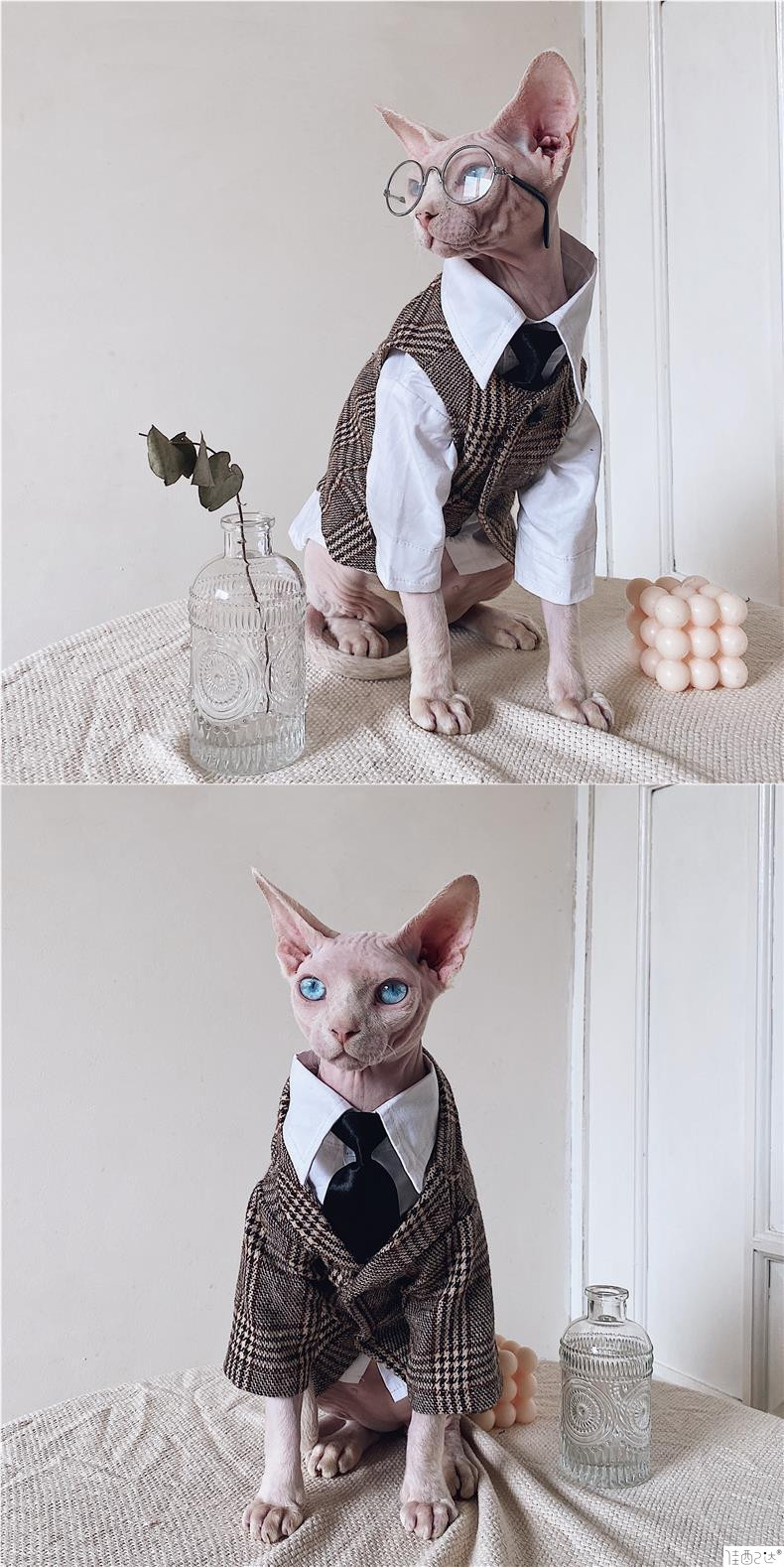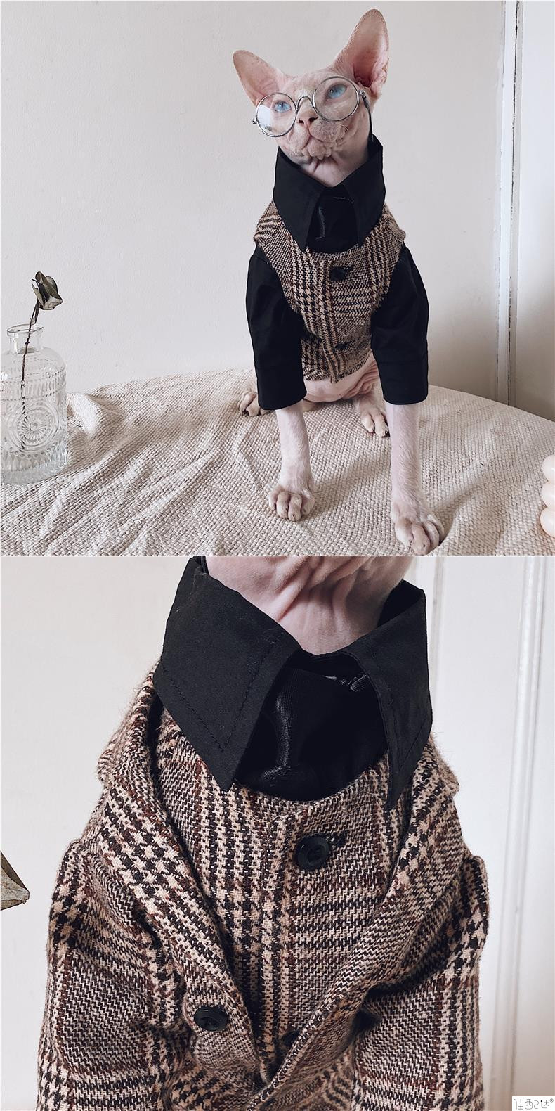 머리카락이없는 고양이 옷 스핑크스 고양이 독일 가을과 겨울 새로운 영국 스타일 격자 무늬 세트 셔츠 세트 커플 트렌디스토어 가기