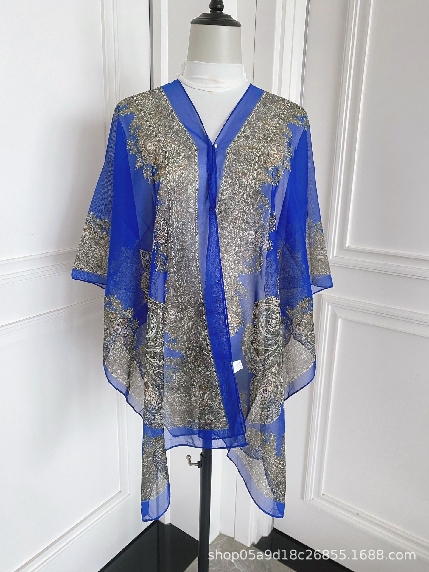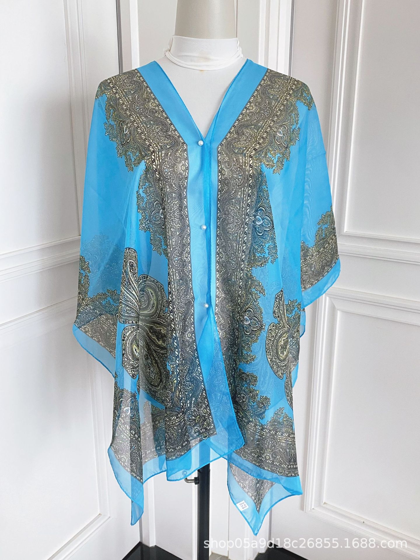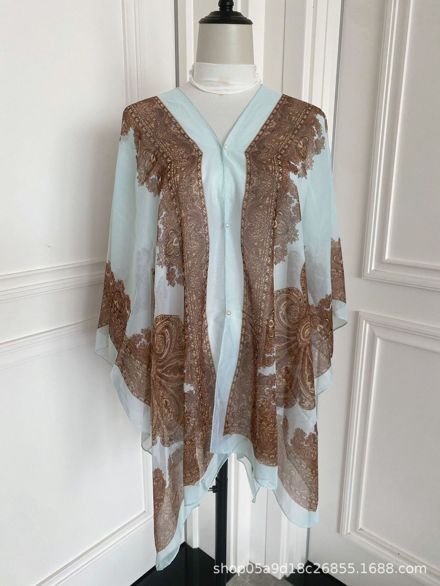 여름 쉬폰 자외선 차단제 목도리 캐슈 프린트 자외선 차단제 소매 긴 소매 얇은 외부 작은 목도리 스카프 여성 도매스토어 가기