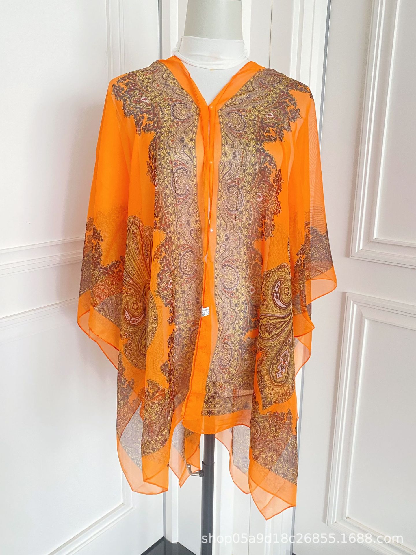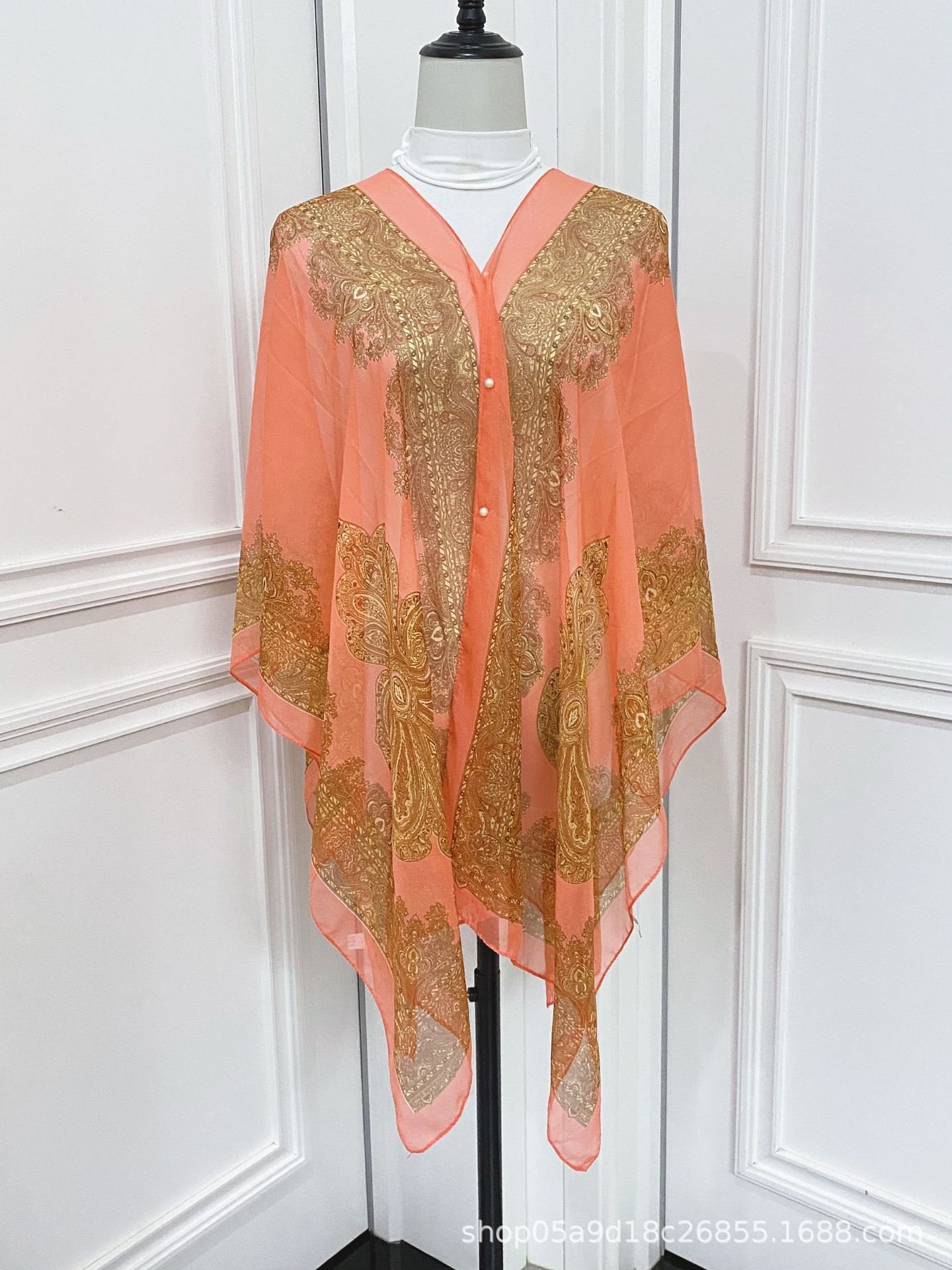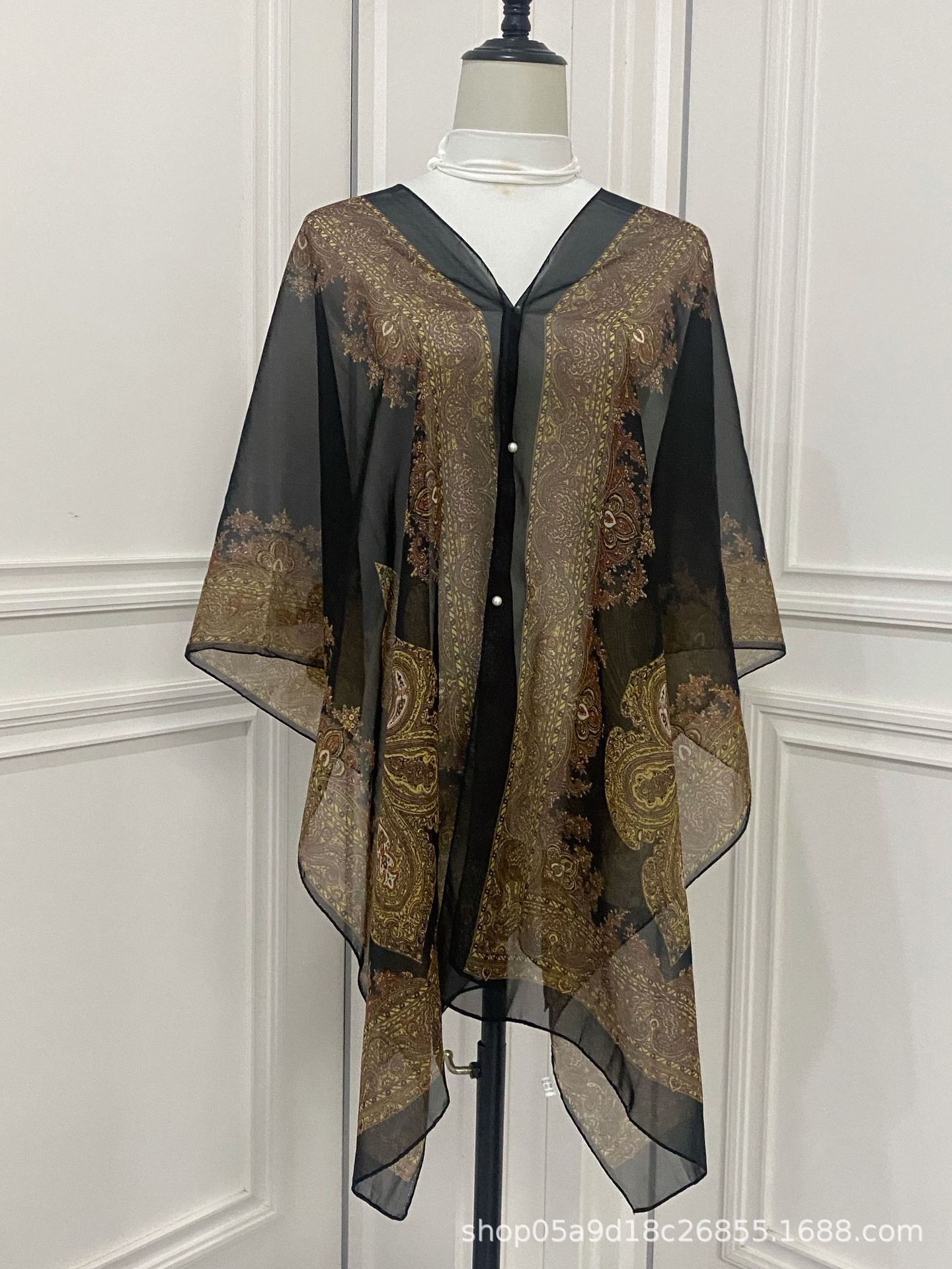 여름 쉬폰 자외선 차단제 목도리 캐슈 프린트 자외선 차단제 소매 긴 소매 얇은 외부 작은 목도리 스카프 여성 도매