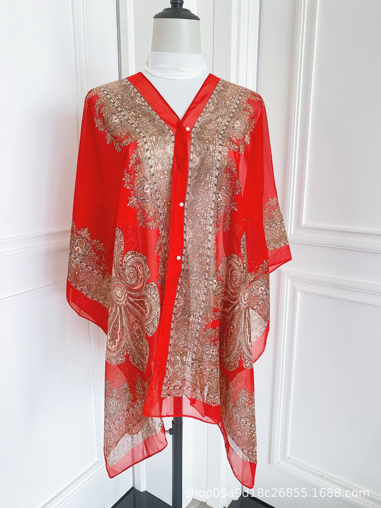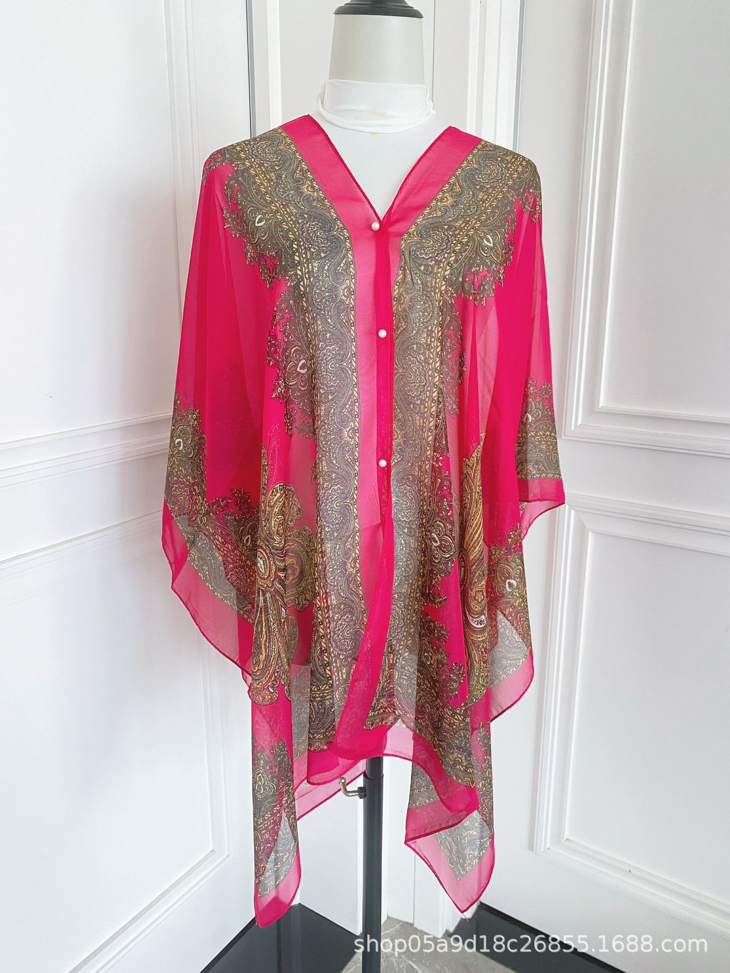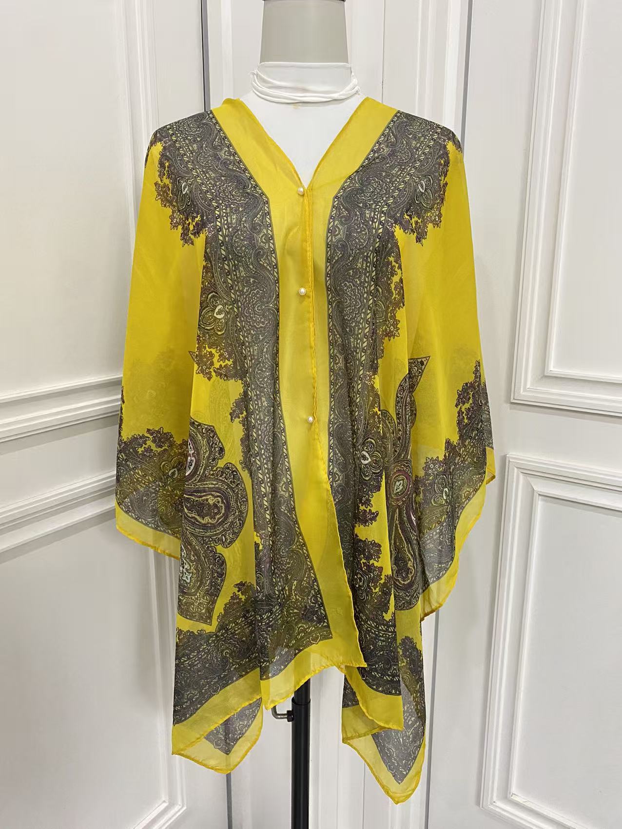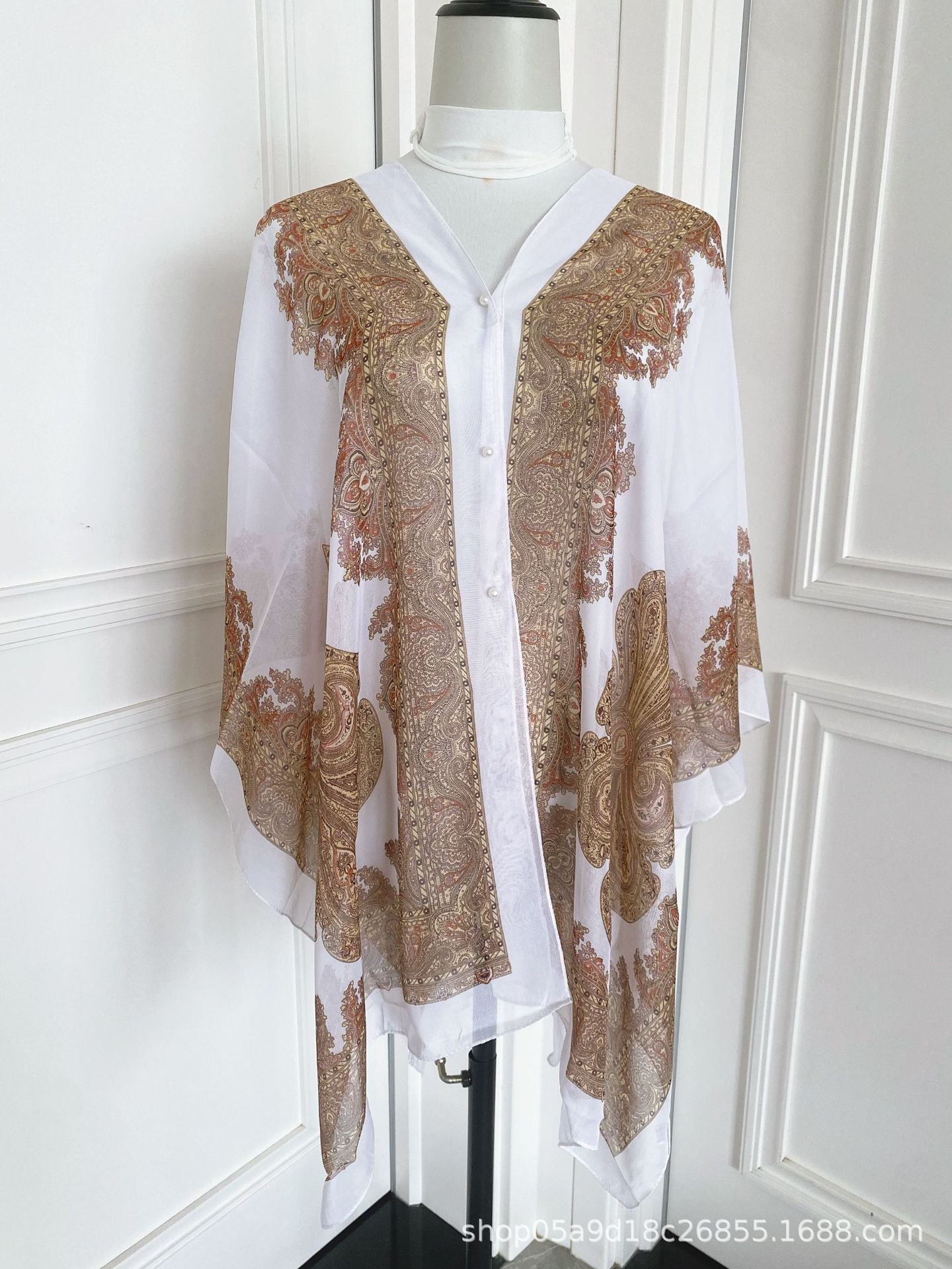 여름 쉬폰 자외선 차단제 목도리 캐슈 프린트 자외선 차단제 소매 긴 소매 얇은 외부 작은 목도리 스카프 여성 도매