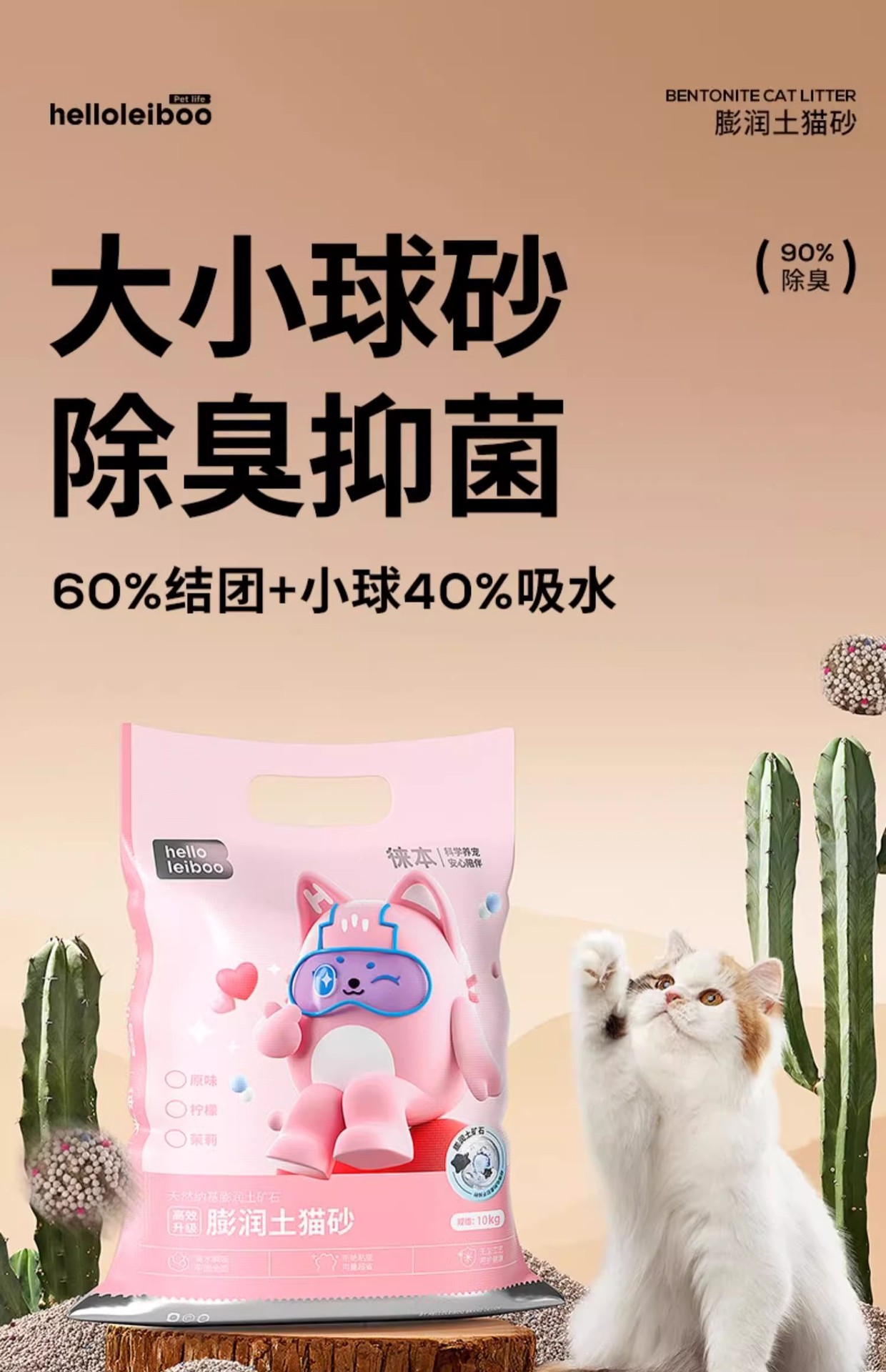 Leiboo 벤토나이트 고양이 쓰레기 우표 10kg 20kg40kg 낮은 먼지 탈취제 덩어리 레몬 고양이 쓰레기 공급