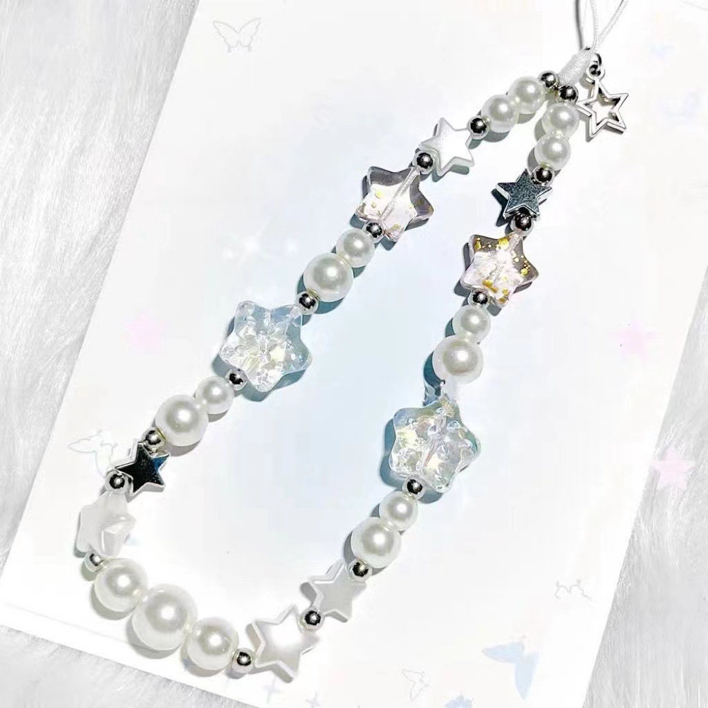 휴대 전화 체인 도매 한국 진주 스타 펜던트 짧은 구슬 체인 휴대 전화 케이스 끈 소녀 손목 장식품스토어 가기