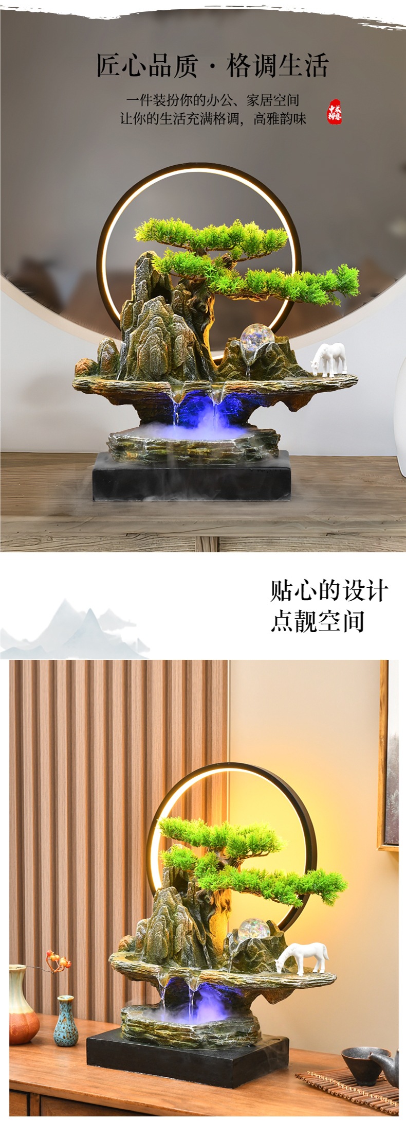 새로운 중국 스타일의 바위 흐르는 물 분수 사무실 거실 순환 조경 장식품 장식 오프닝 선물 조경스토어 가기