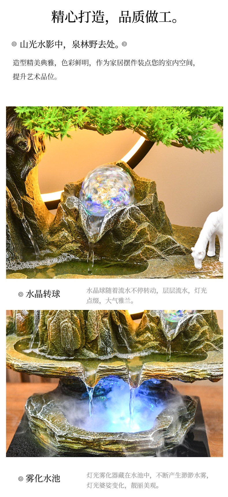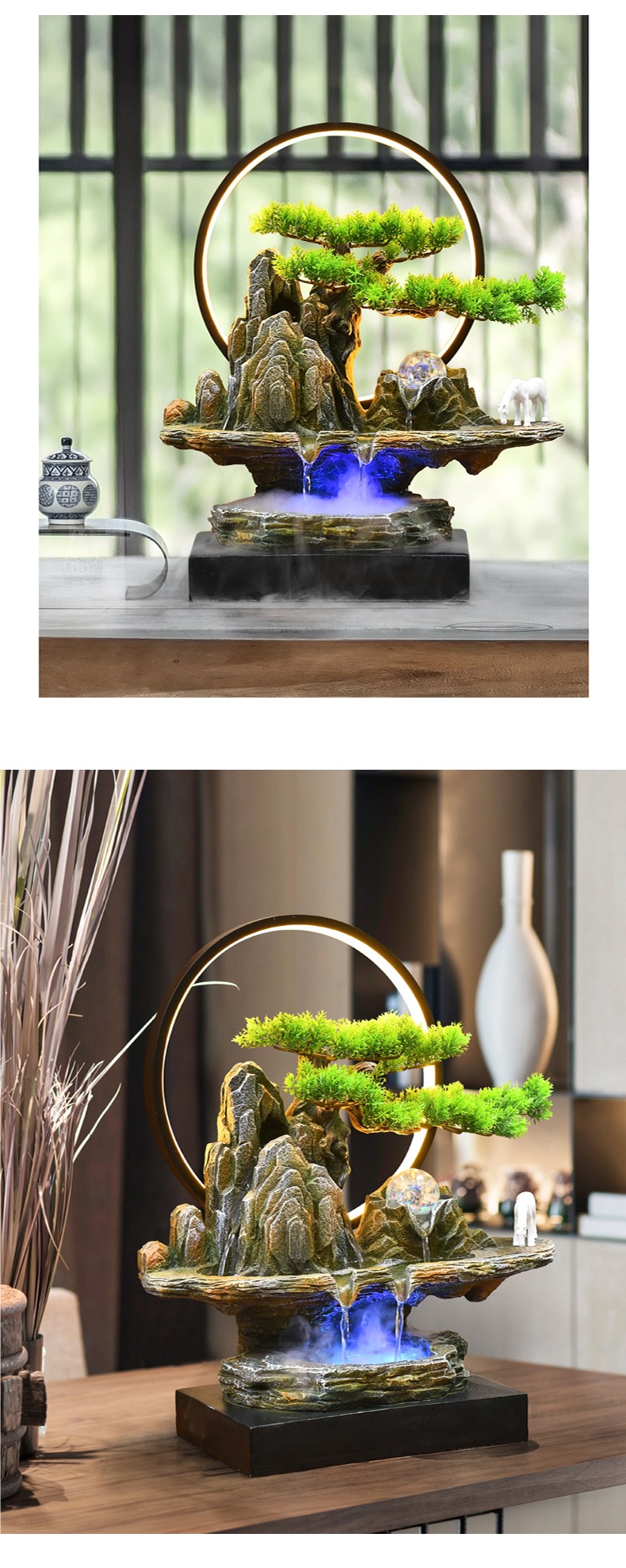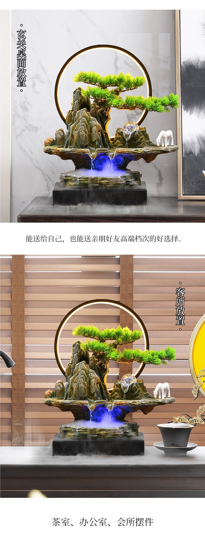 새로운 중국 스타일의 바위 흐르는 물 분수 사무실 거실 순환 조경 장식품 장식 오프닝 선물 조경