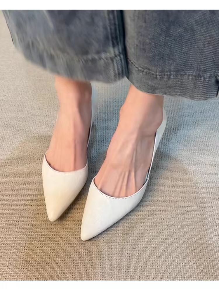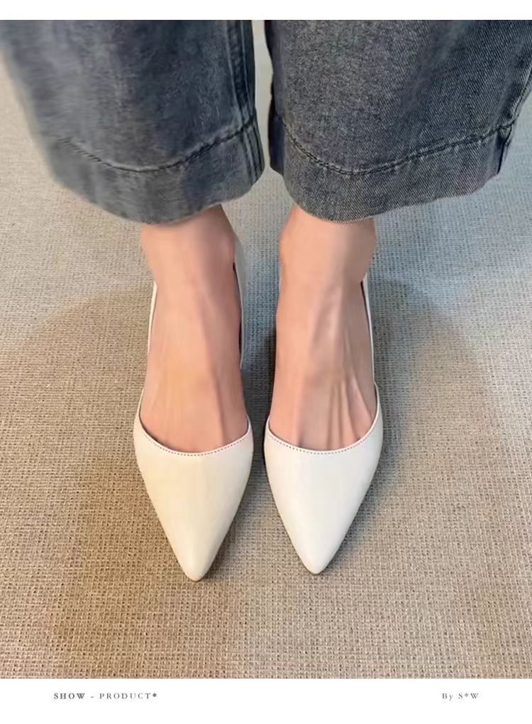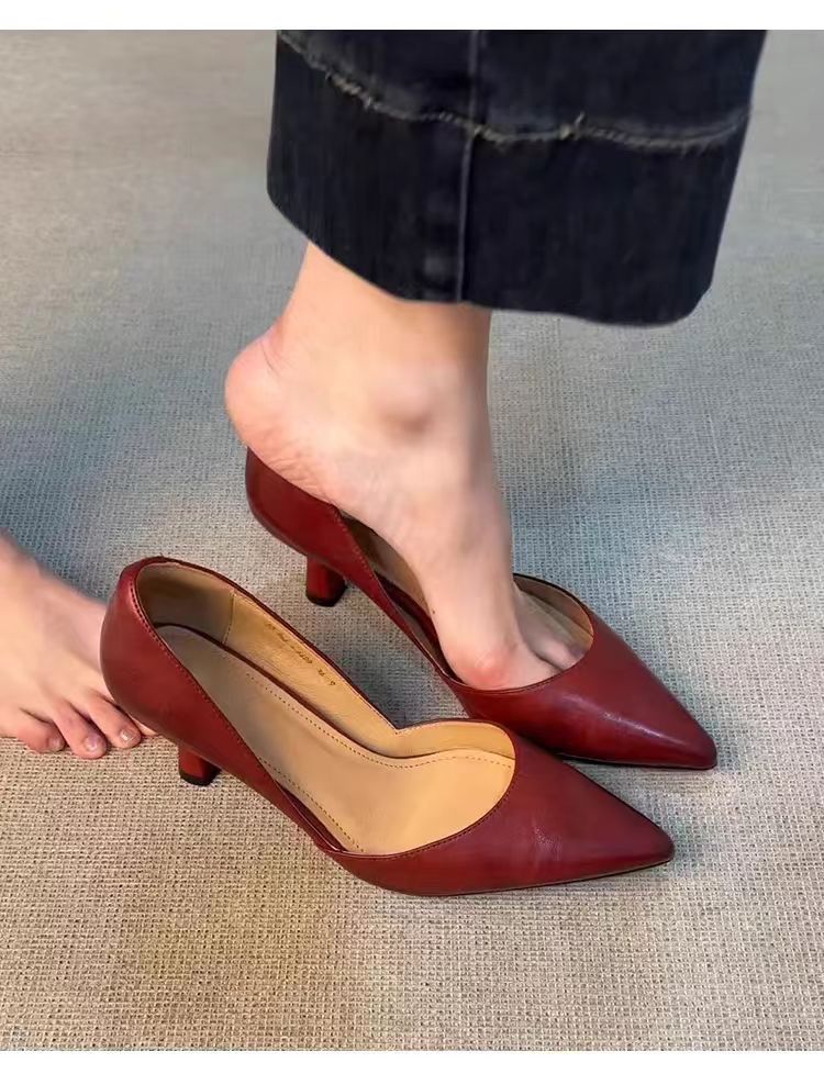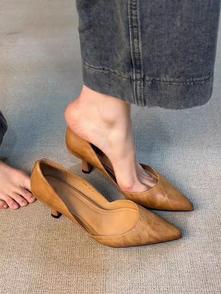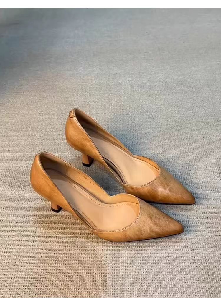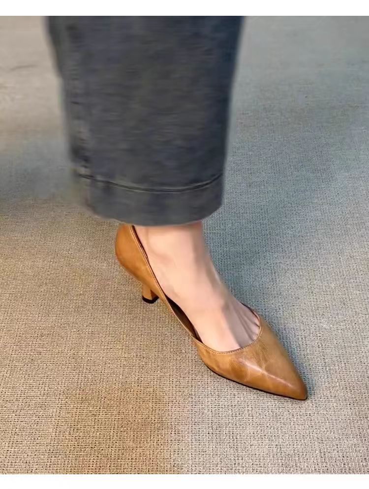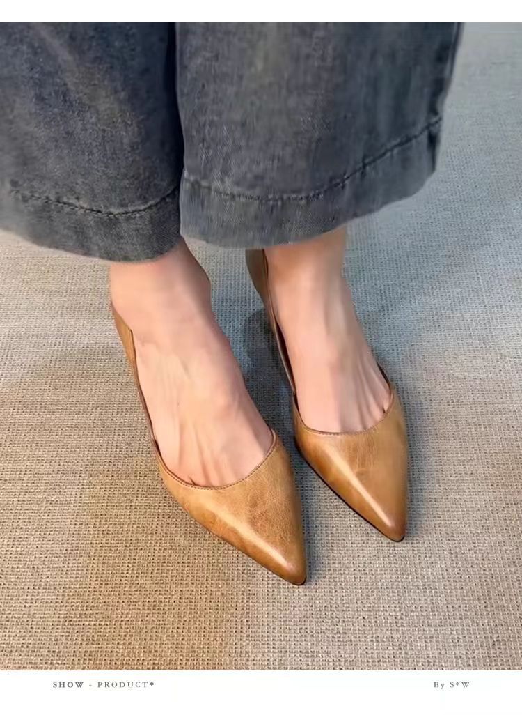 양가죽 버전 ~ 올매치 하이힐 슈즈 여성용 슬립 온 레트로 정품 가죽 전문 작업 신발 얕은 입 뾰족한 기질 싱글 레이어 신발스토어 가기