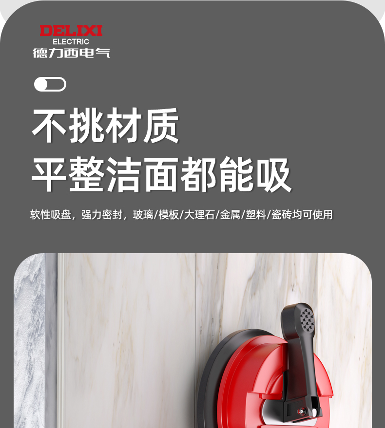 Delisi 전기 유리 흡입 컵 대형 바닥 타일 흡입 리프터 진공 설치 처리 흡입 컵스토어 가기