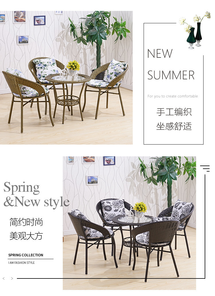 발코니 테이블과 의자 등나무 의자 3 피스 세트 조합 간단한 현대 레저 야외 안뜰 작은 커피 테이블 단일 의자스토어 가기
