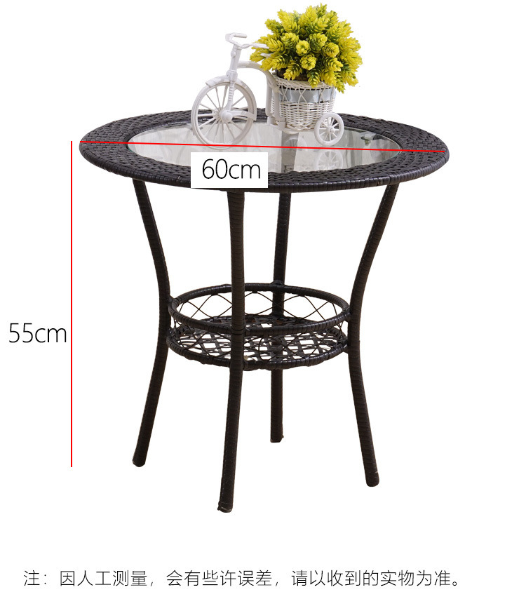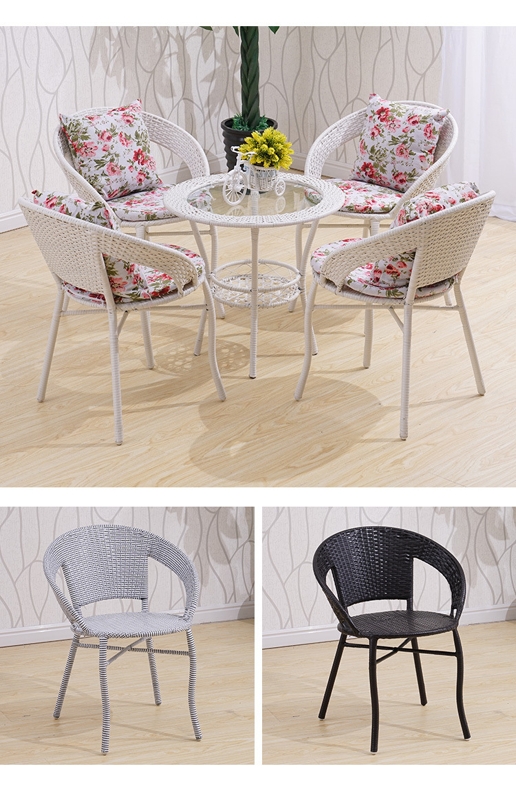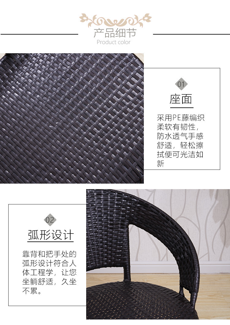 발코니 테이블과 의자 등나무 의자 3 피스 세트 조합 간단한 현대 레저 야외 안뜰 작은 커피 테이블 단일 의자