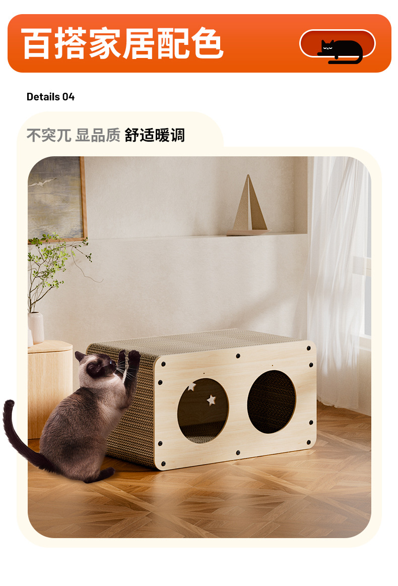 • 하우스형 고양이 긁는 포스트 009-아름다운 오크색