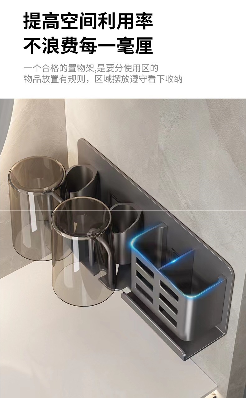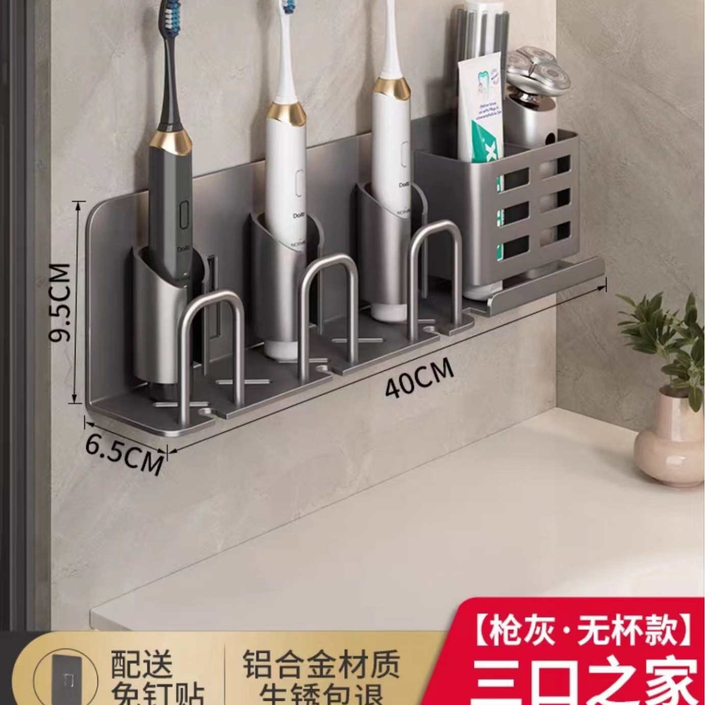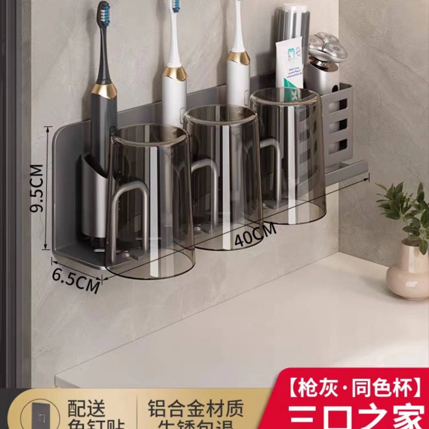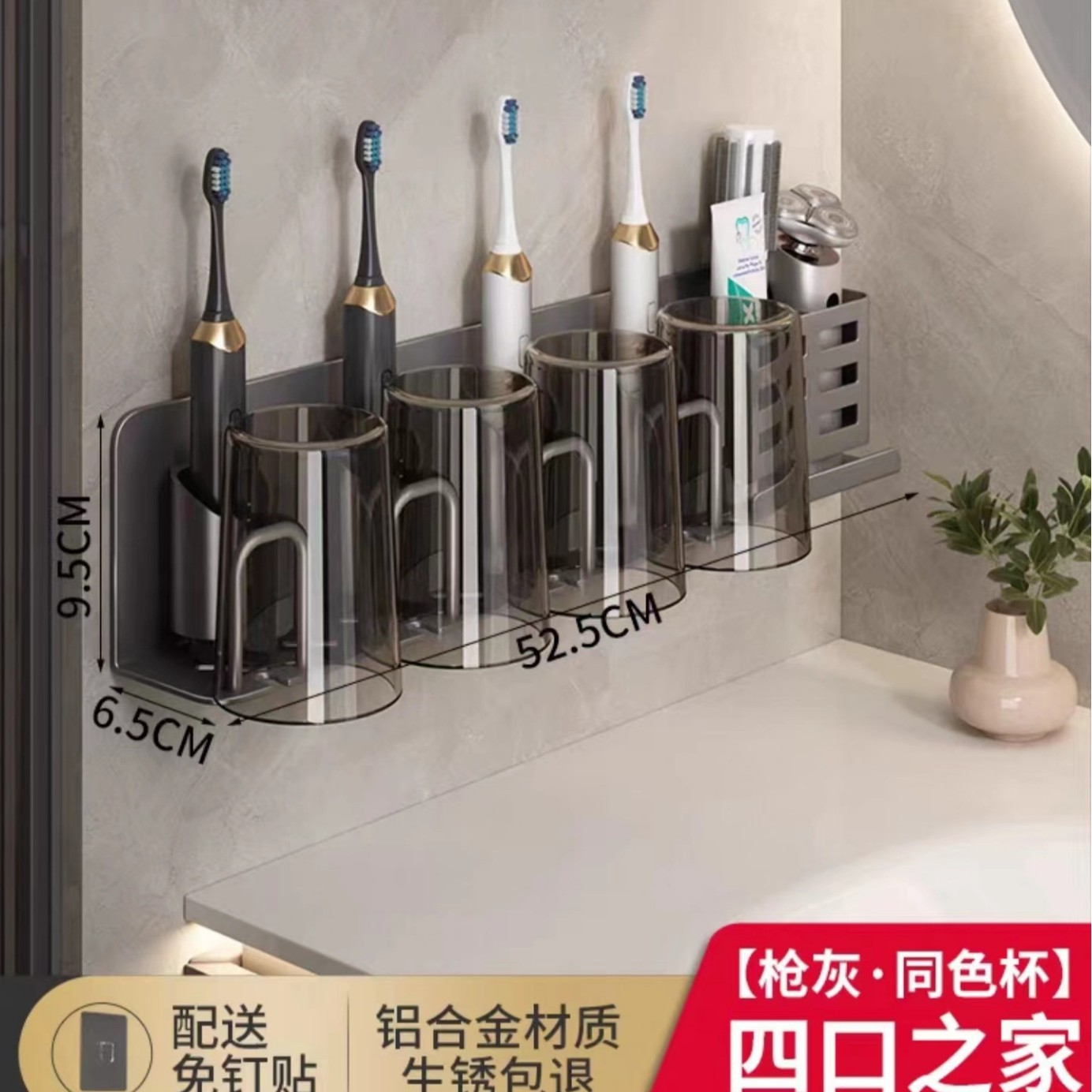 칫솔 보관 랙 비 펀칭 건 그레이 화장실 화장실 가글 컵 저장 가정용 벽 장착 전기 칫솔 랙