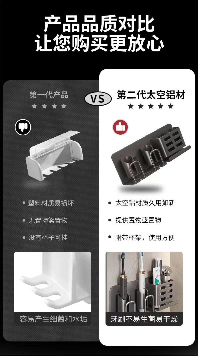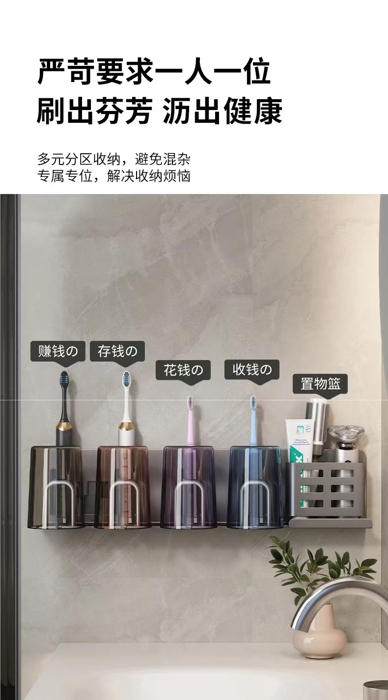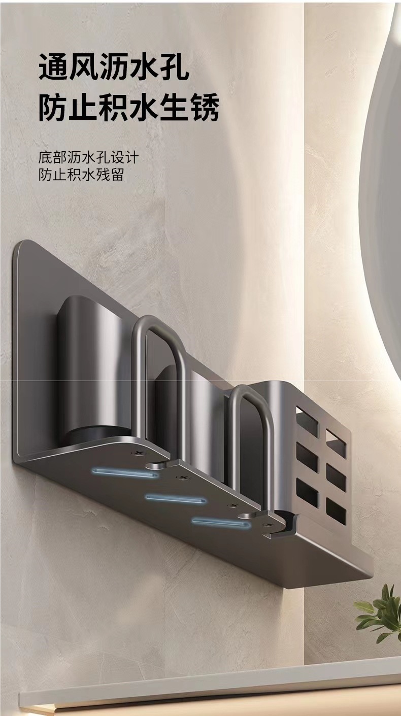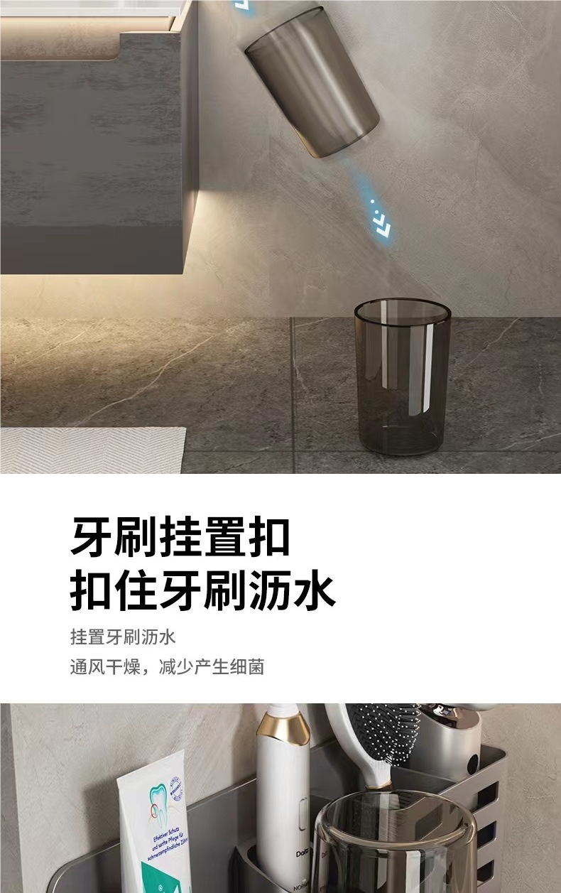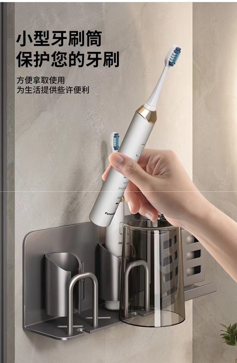 칫솔 보관 랙 비 펀칭 건 그레이 화장실 화장실 가글 컵 저장 가정용 벽 장착 전기 칫솔 랙