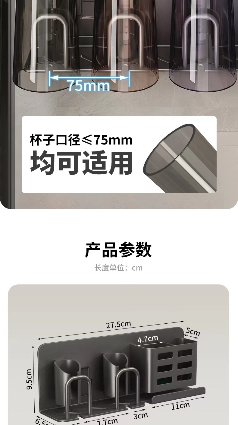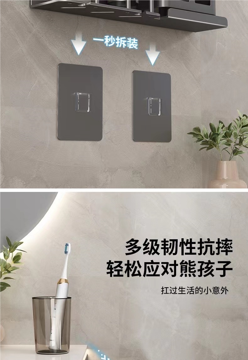 • 건그레이 - 칫솔걸이 - 3인용 컵 3개 포함(네일프리 스티커 설치)