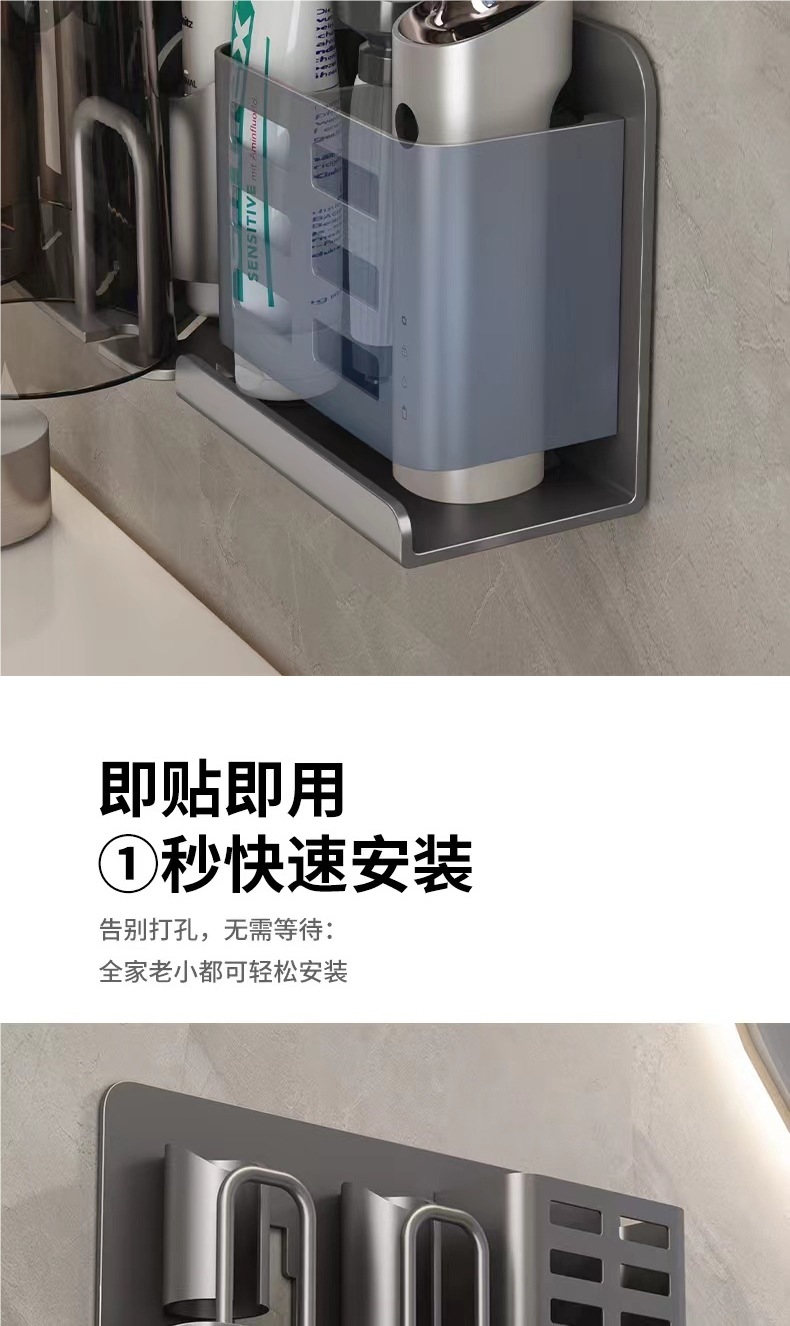 칫솔 보관 랙 비 펀칭 건 그레이 화장실 화장실 가글 컵 저장 가정용 벽 장착 전기 칫솔 랙스토어 가기