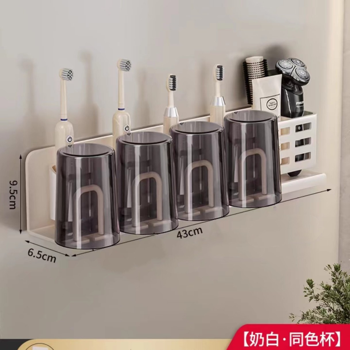 • 유백색 칫솔걸이 - 4인용 컵 4개 포함(네일프리 설치)