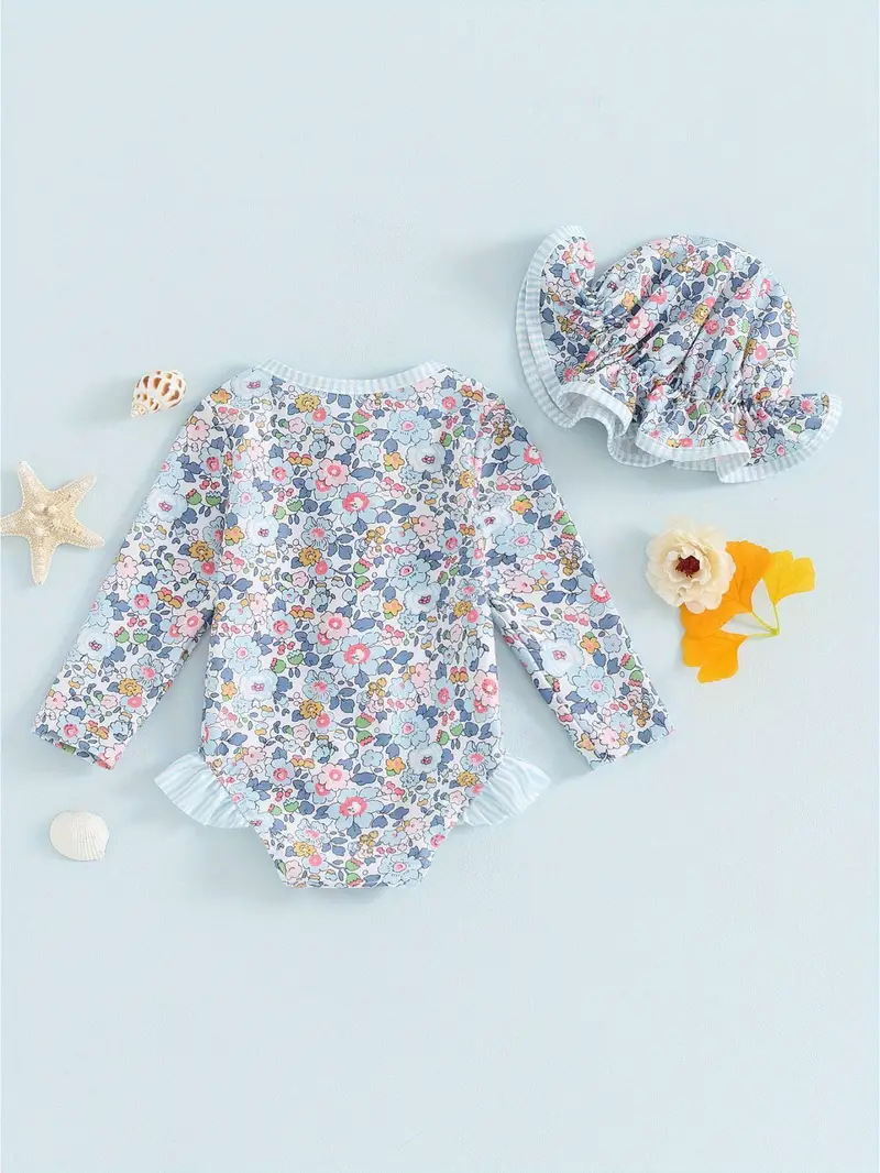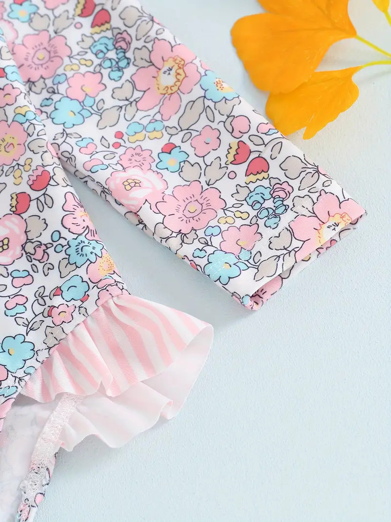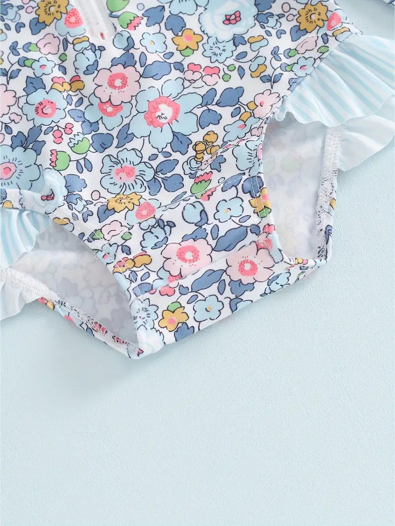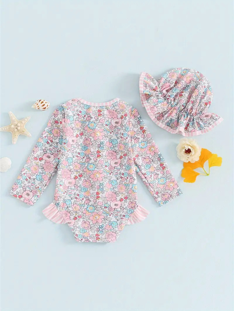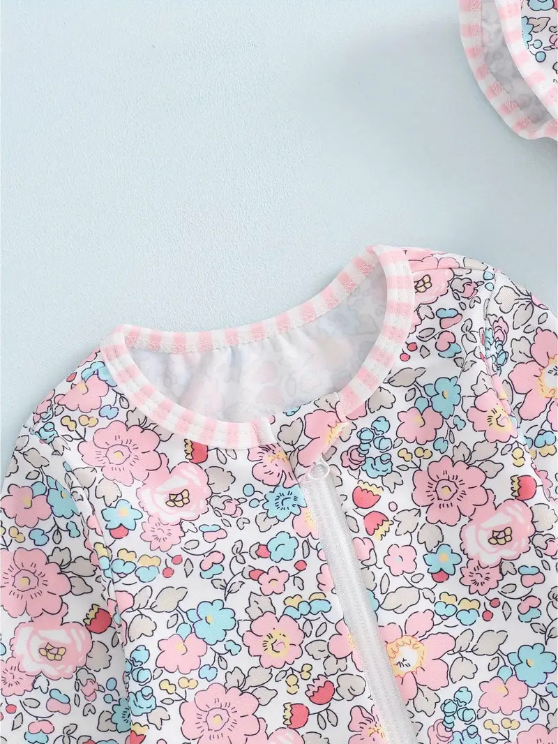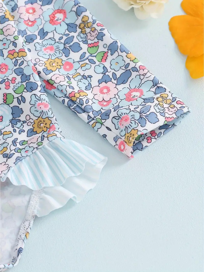 2025 새로운 소녀 Ins 우아한 원피스 수영복 여름 옷 어린이 꽃 선 스크린 빠른 건조 긴팔 수영복