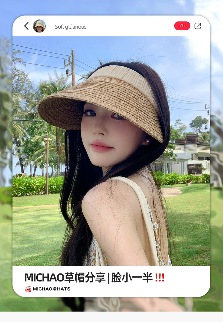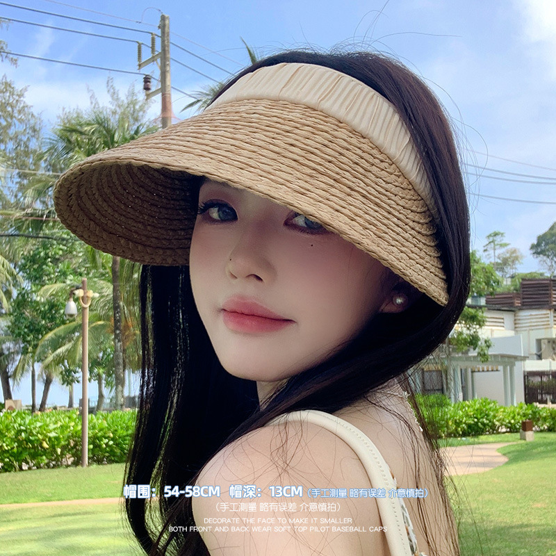 여름 라피아 밀짚 햇빛 가리개 모자, 얼굴을 더 작아 보이게 하는 비치용 햇빛 가리개 모자, 여성용 자외선 차단 모자, 맞춤 제작스토어 가기