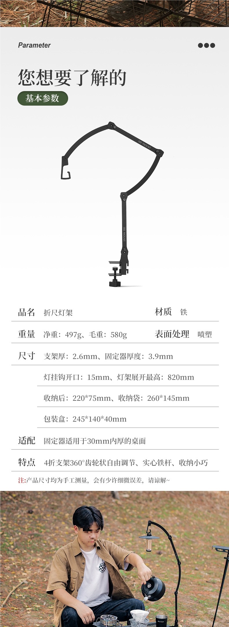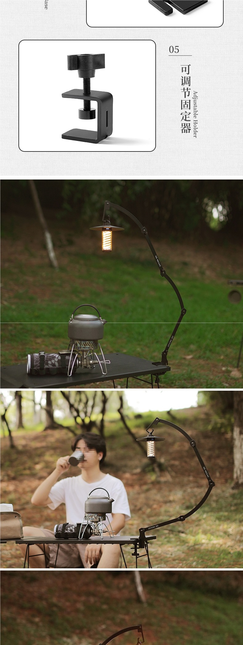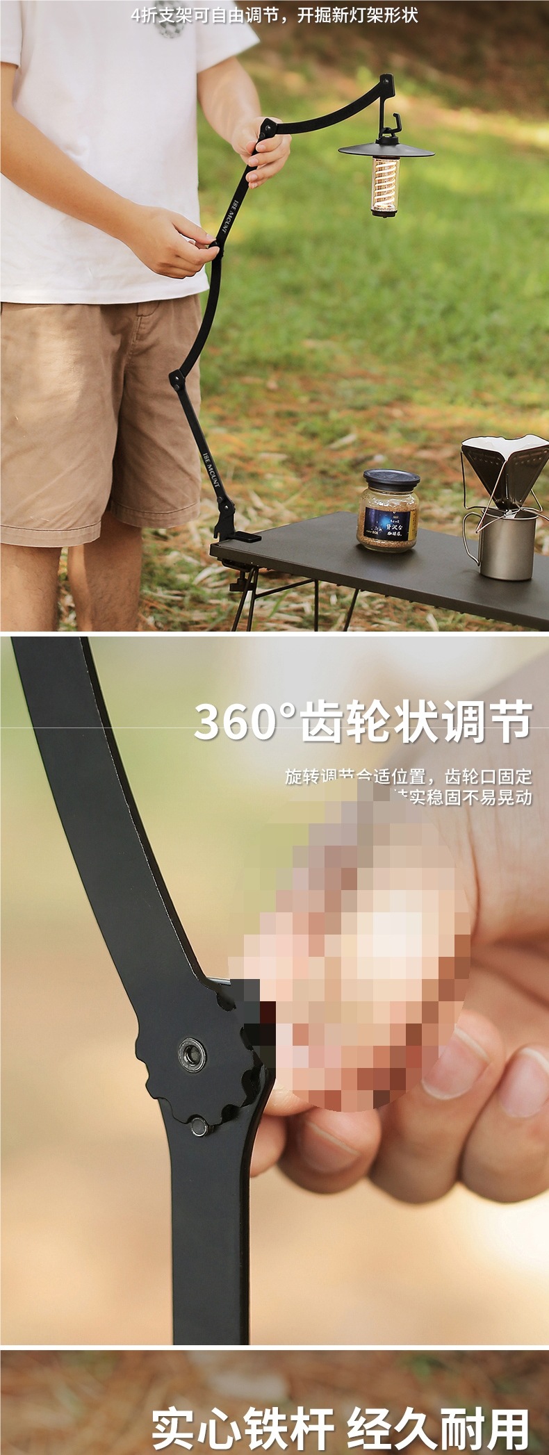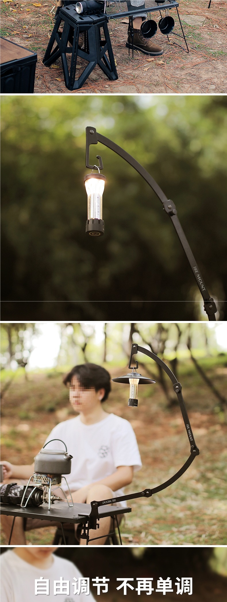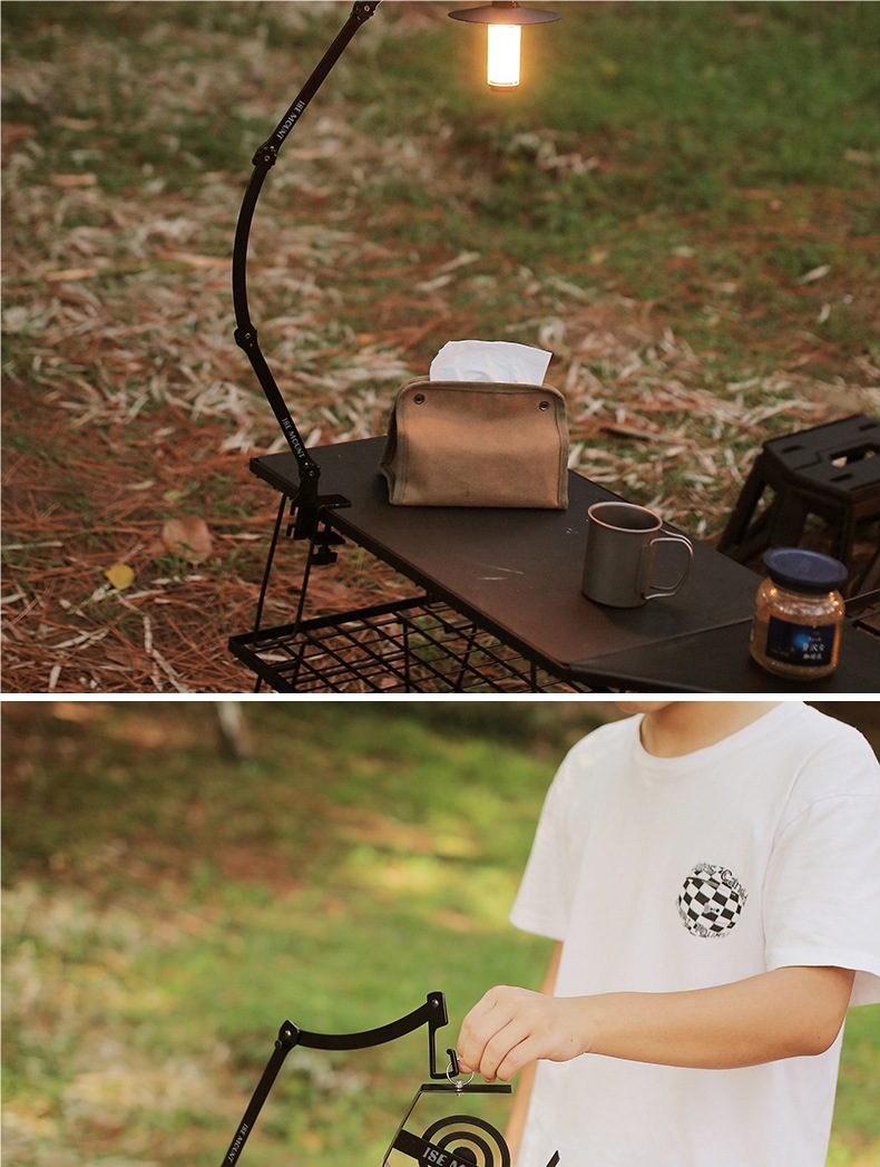 야외 캠핑 램프 스탠드 멀티 폼 조정 가능한 캠핑 램프 스탠드 휴대용 금속 긴 팔 테이블 램프 스탠드 캠핑 램프 스탠드스토어 가기