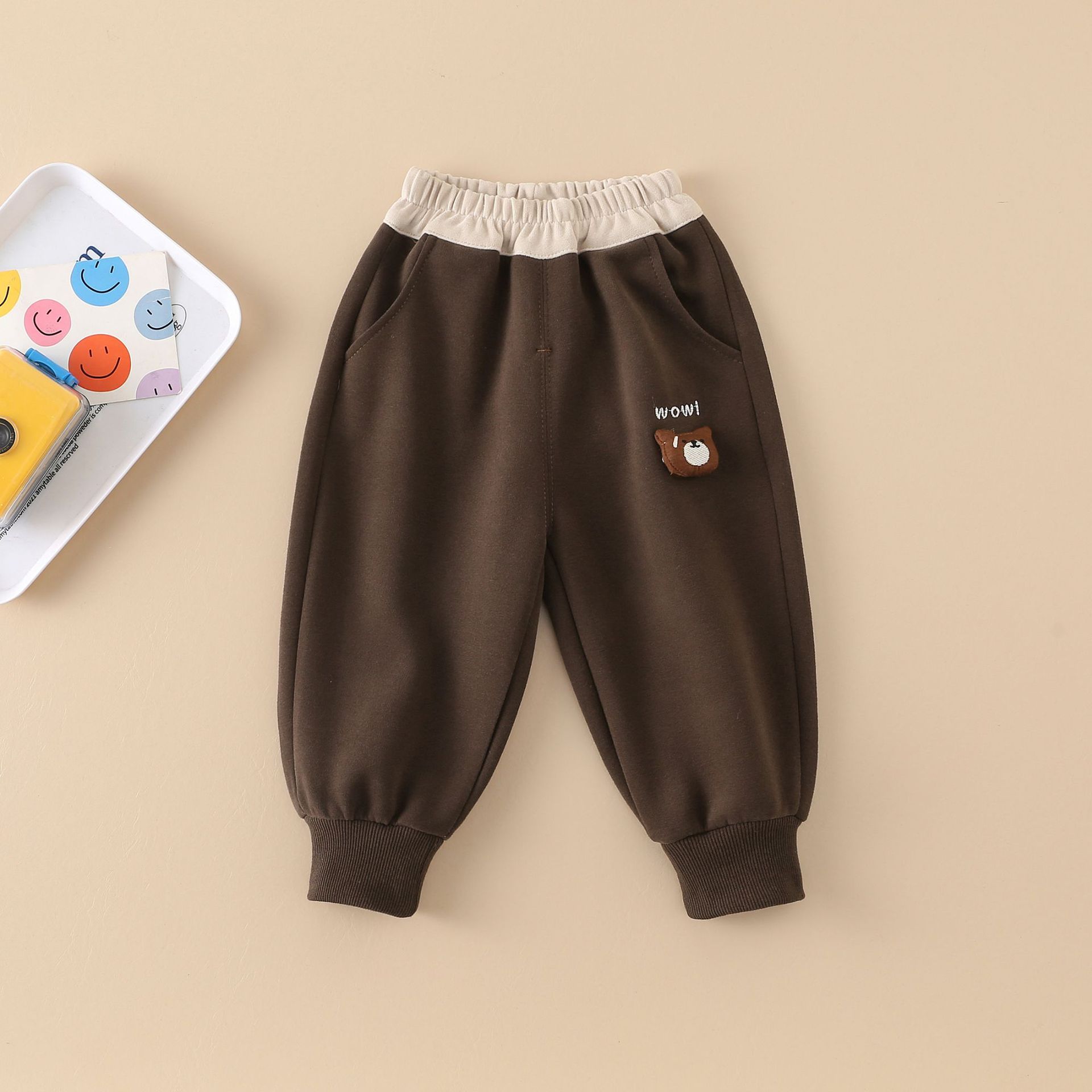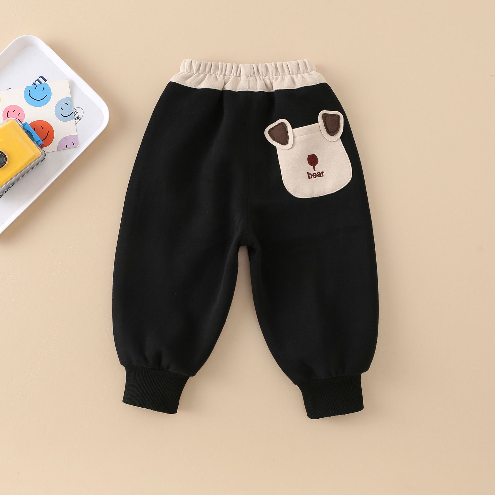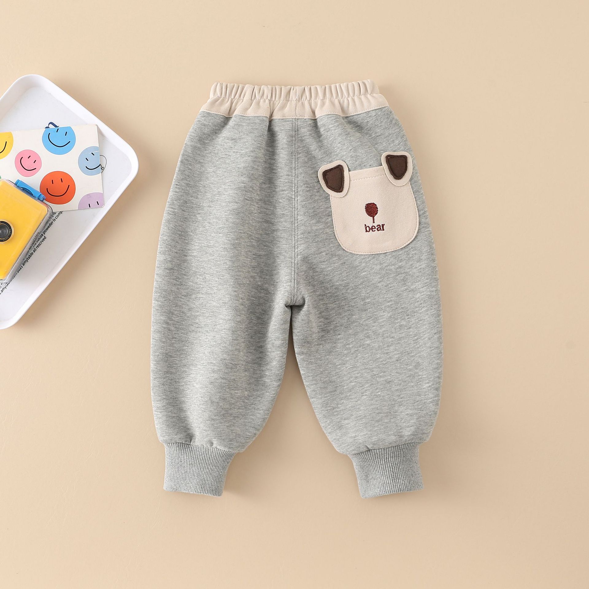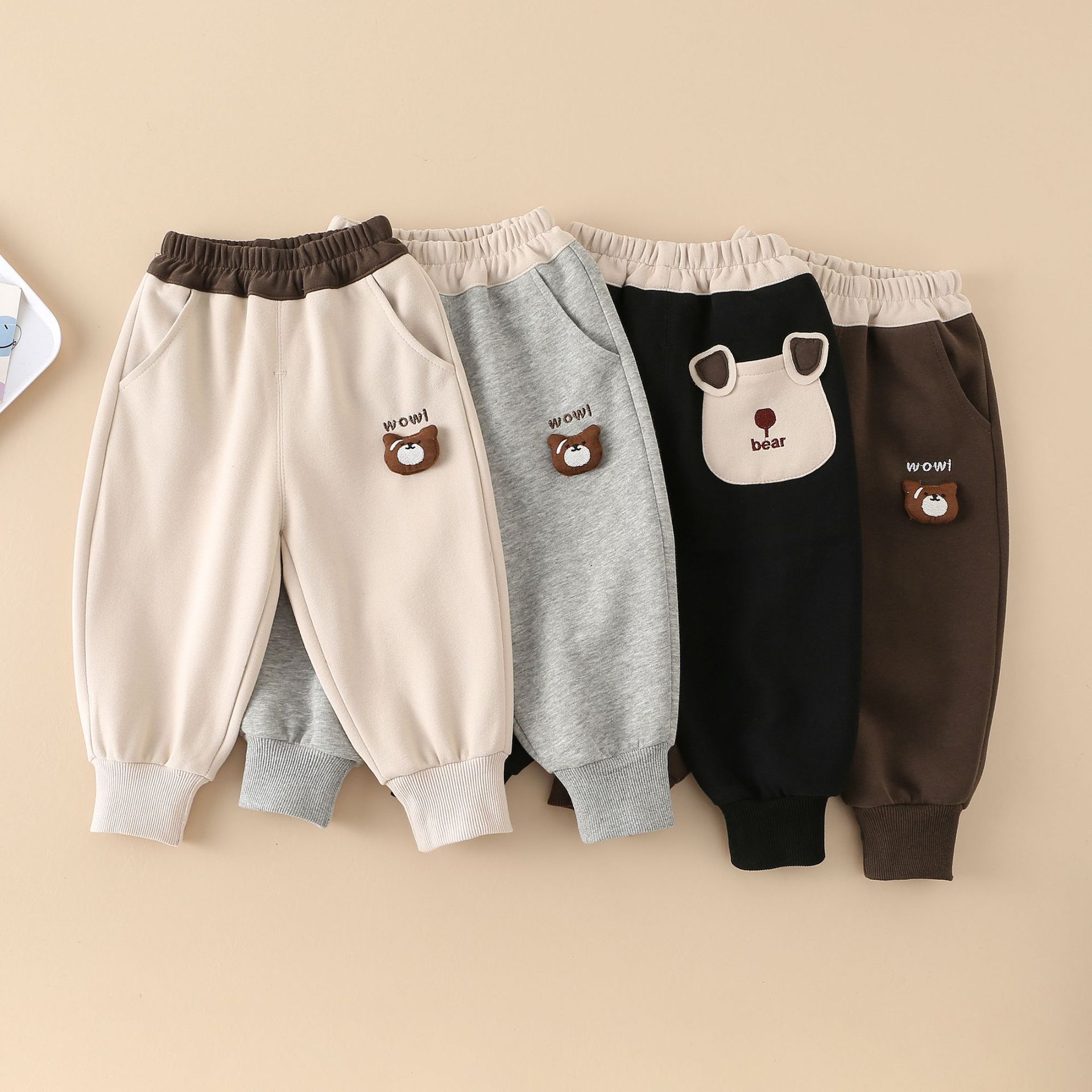 아동복 소년 캐주얼 바지 봄과 가을 외부 착용 한국식 신축 어린이 유행 바지 3 차원 곰 머리 편지스토어 가기