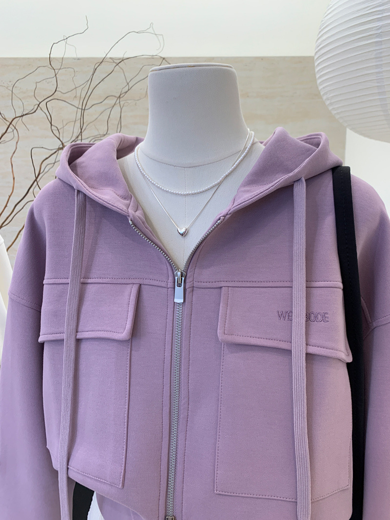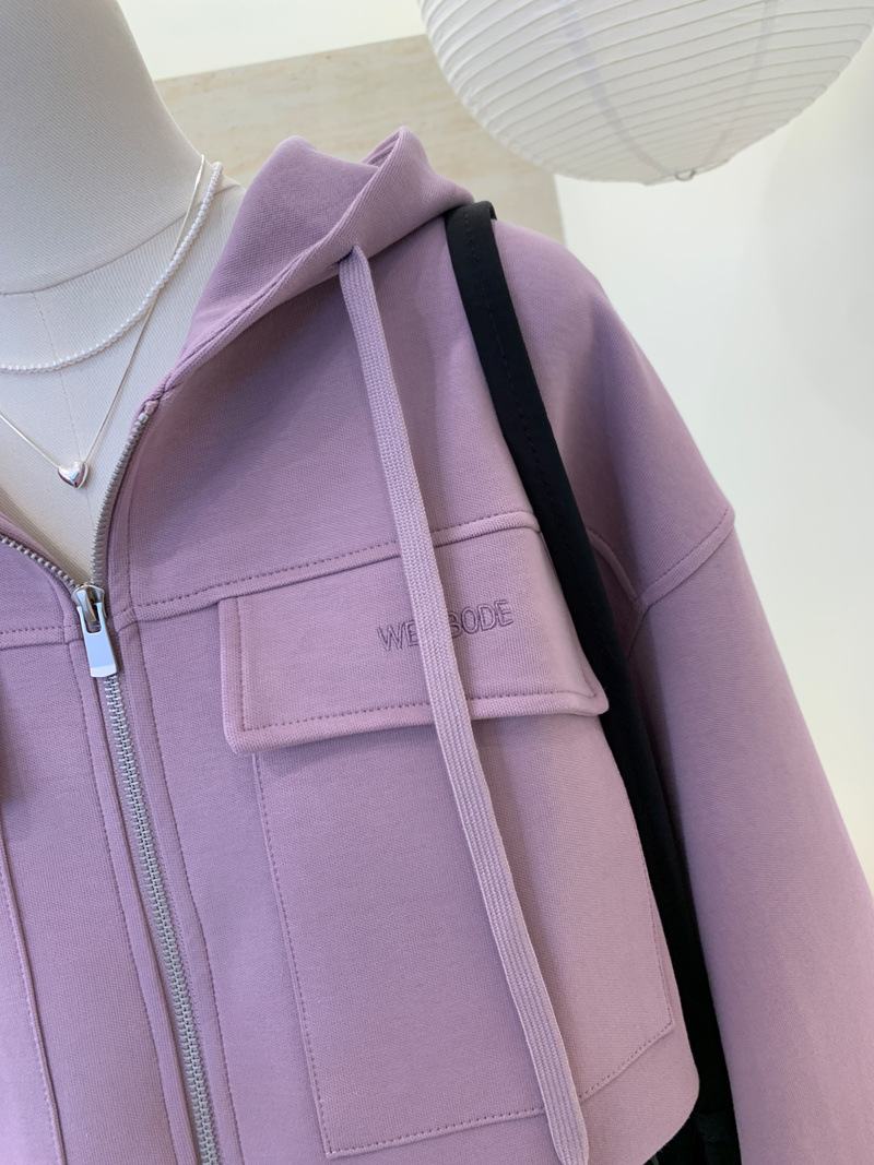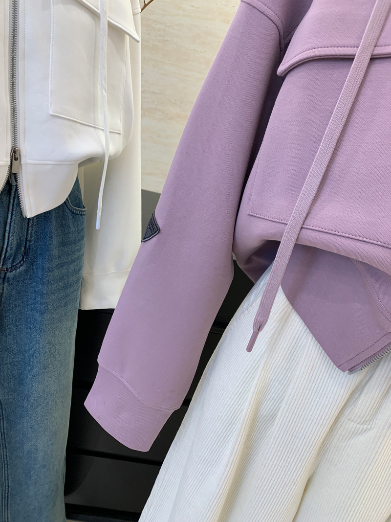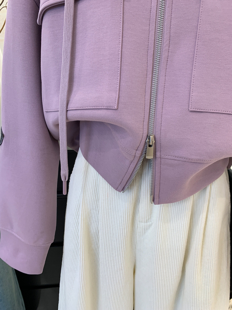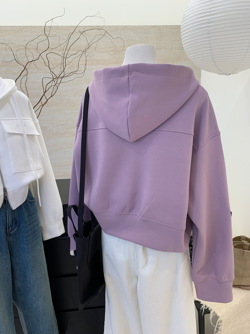 봄 새로운 하이 엔드 센스 루즈 캐주얼 올 매치 후드 지퍼 짧은 카디건 스웨터 재킷 여자 트렌디 탑