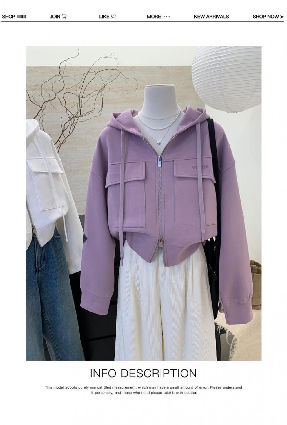 봄 새로운 하이 엔드 센스 루즈 캐주얼 올 매치 후드 지퍼 짧은 카디건 스웨터 재킷 여자 트렌디 탑스토어 가기