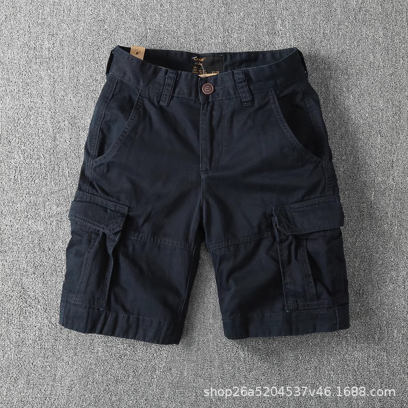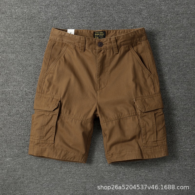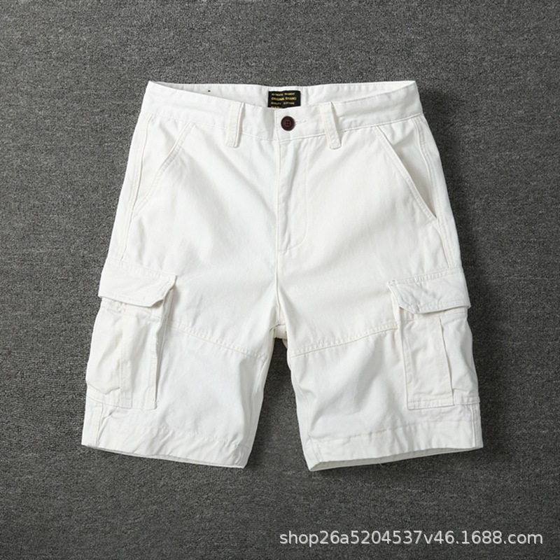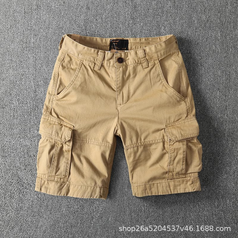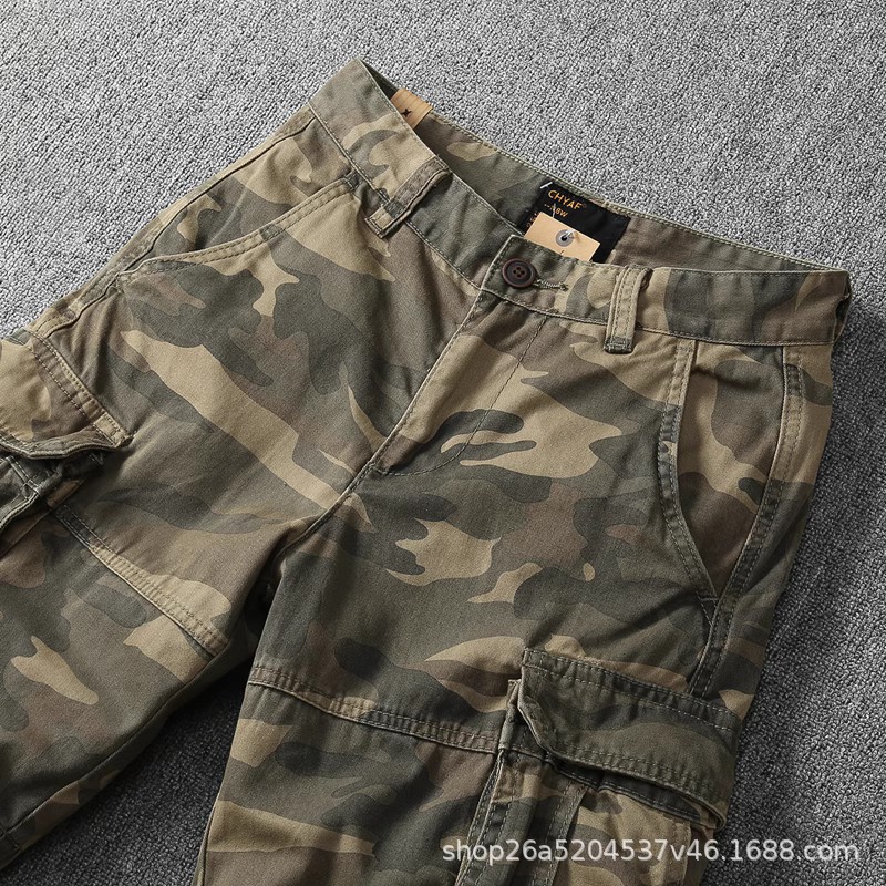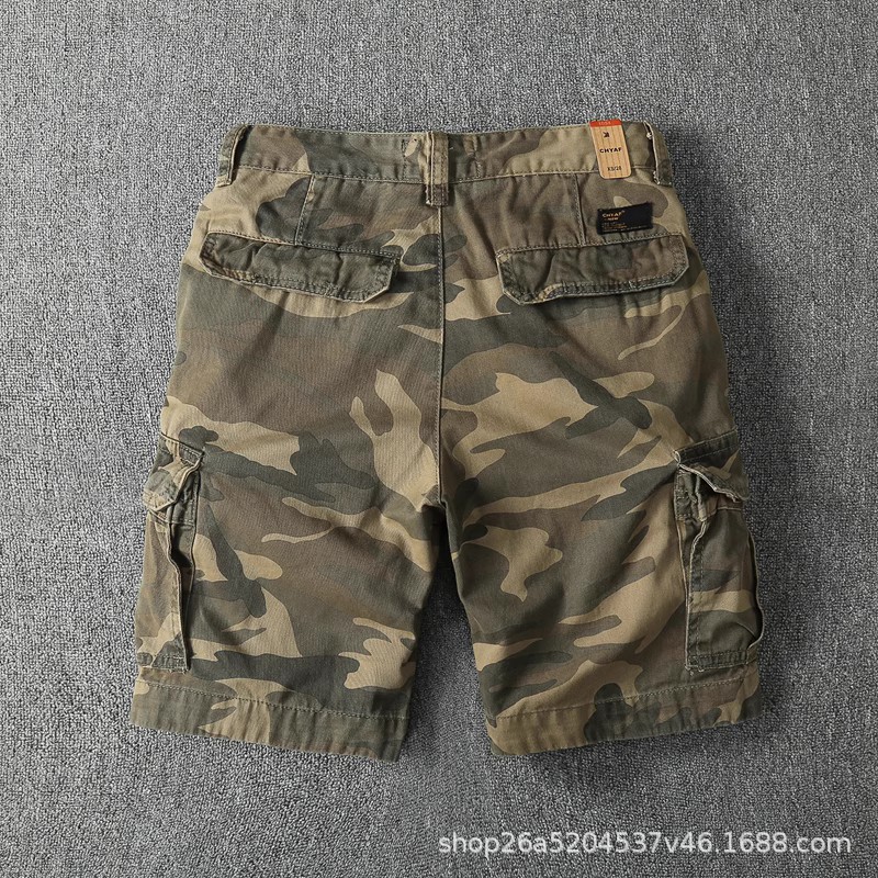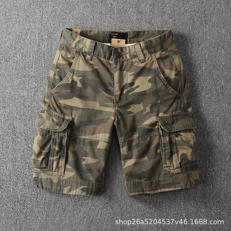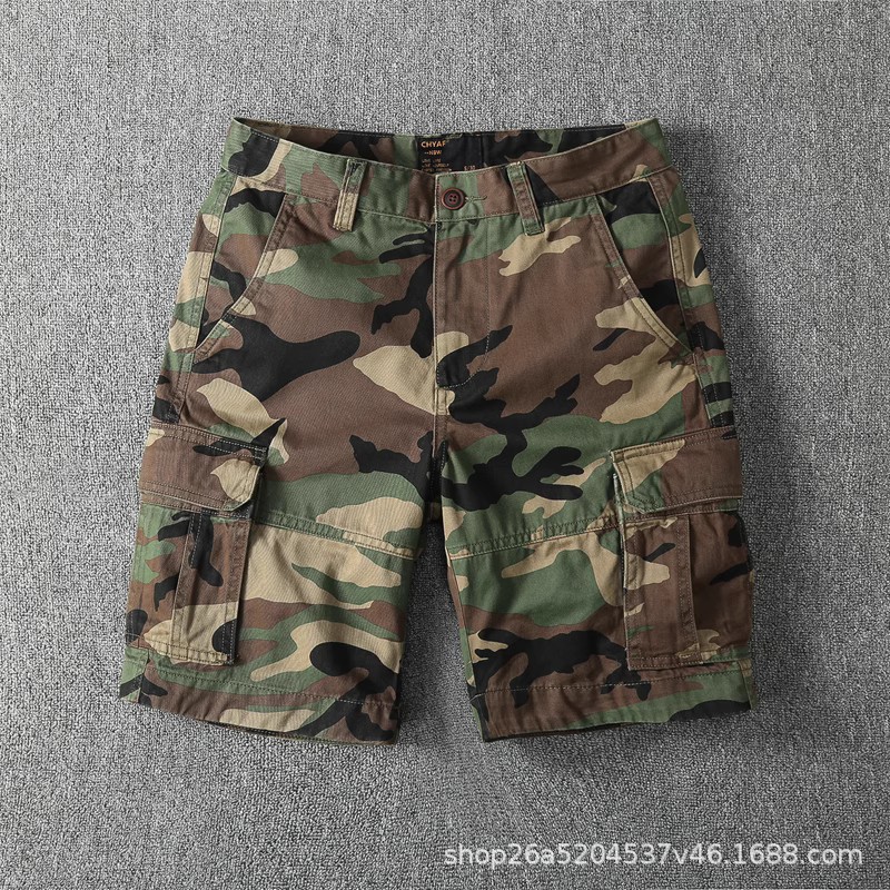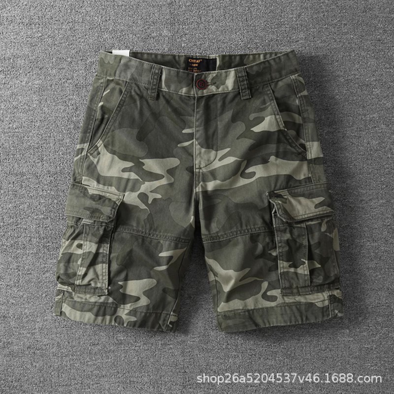 유럽과 미국의 레트로 남성 야외 느슨한 멀티 포켓 스포츠 위장 작업복 반바지 스트레이트 5 점 바지 여름