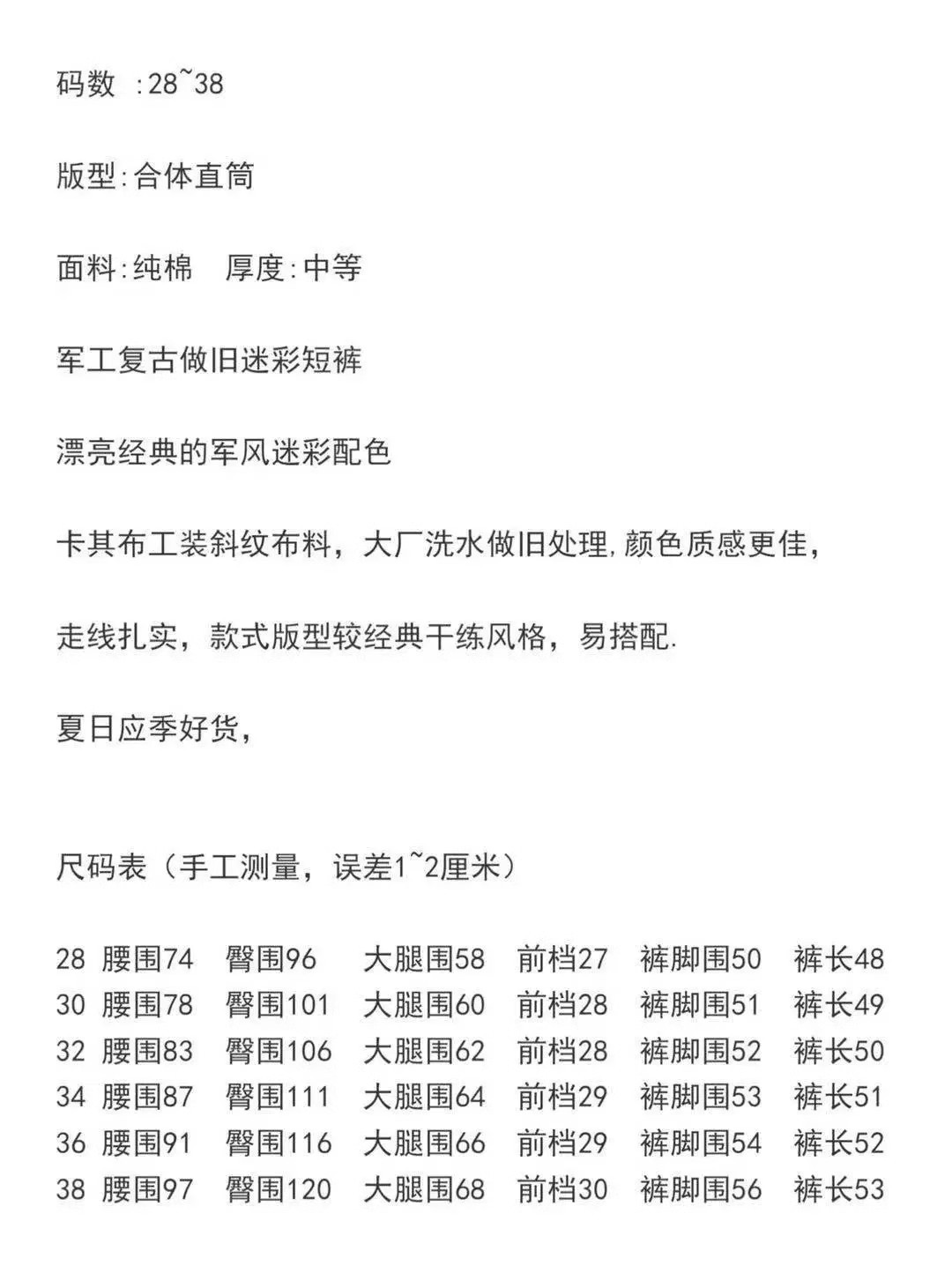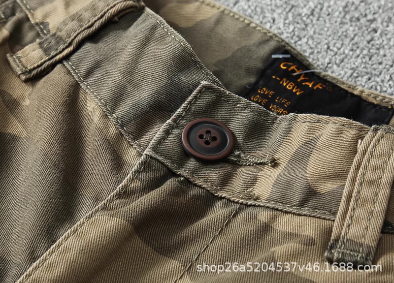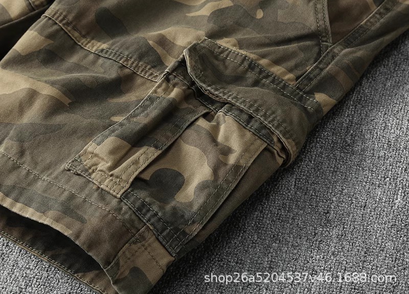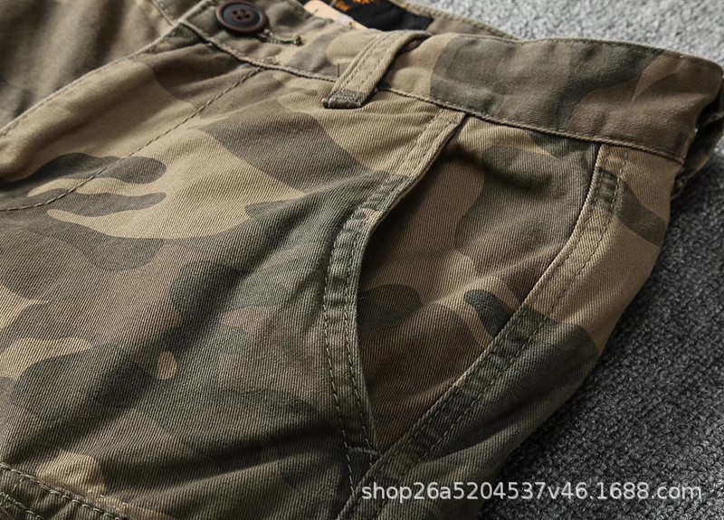 유럽과 미국의 레트로 남성 야외 느슨한 멀티 포켓 스포츠 위장 작업복 반바지 스트레이트 5 점 바지 여름스토어 가기
