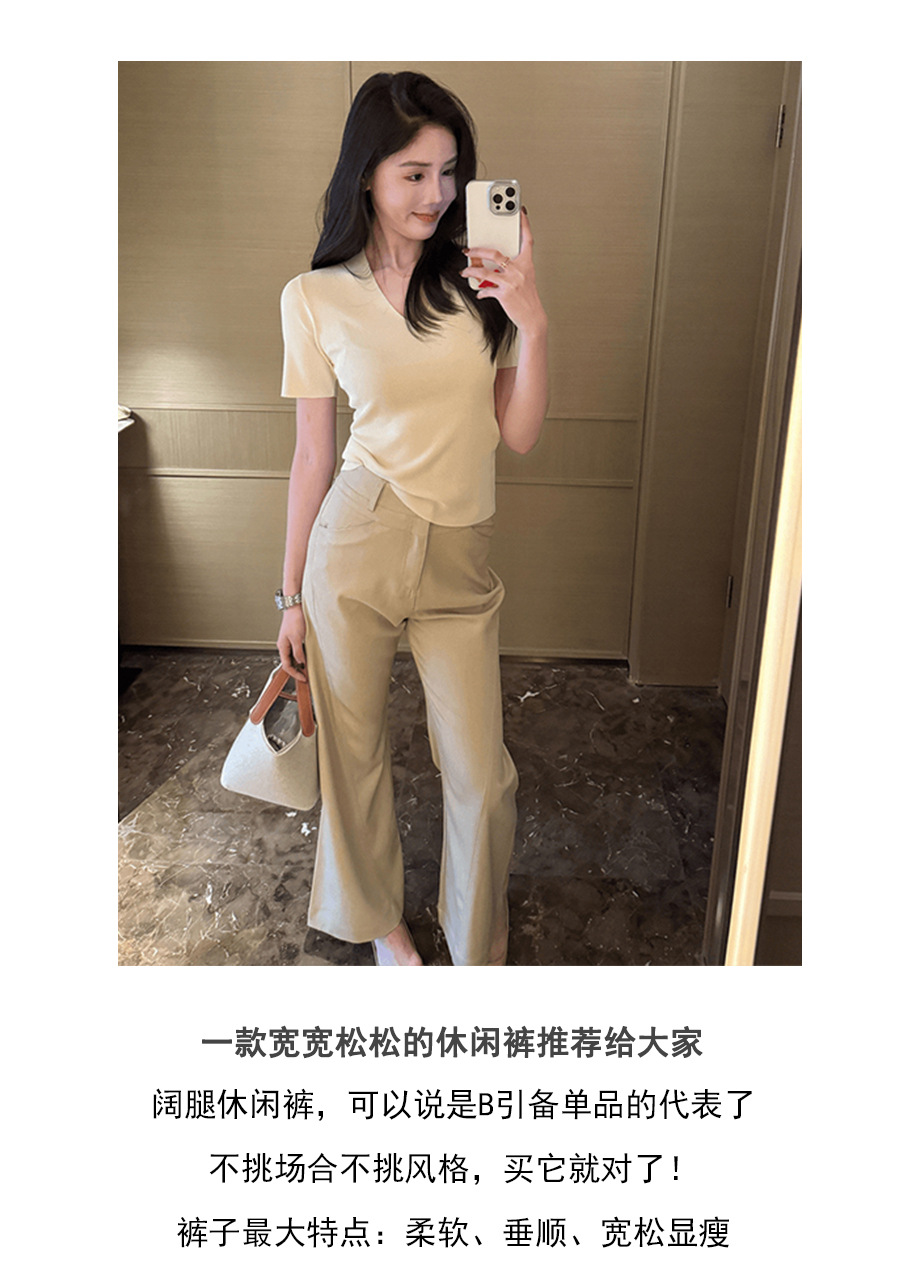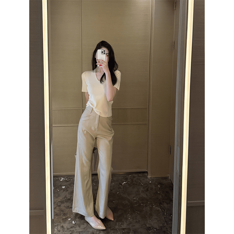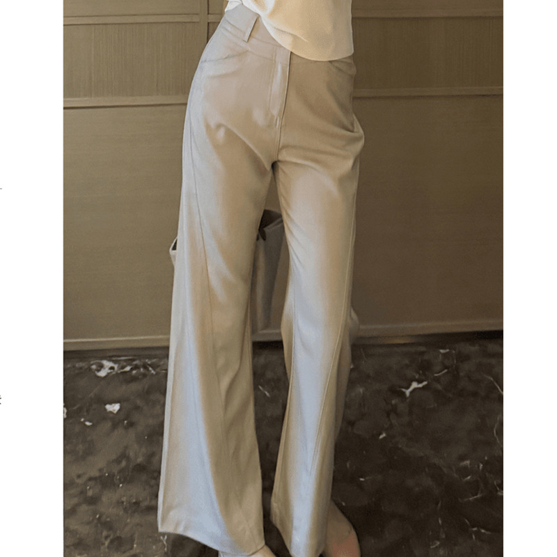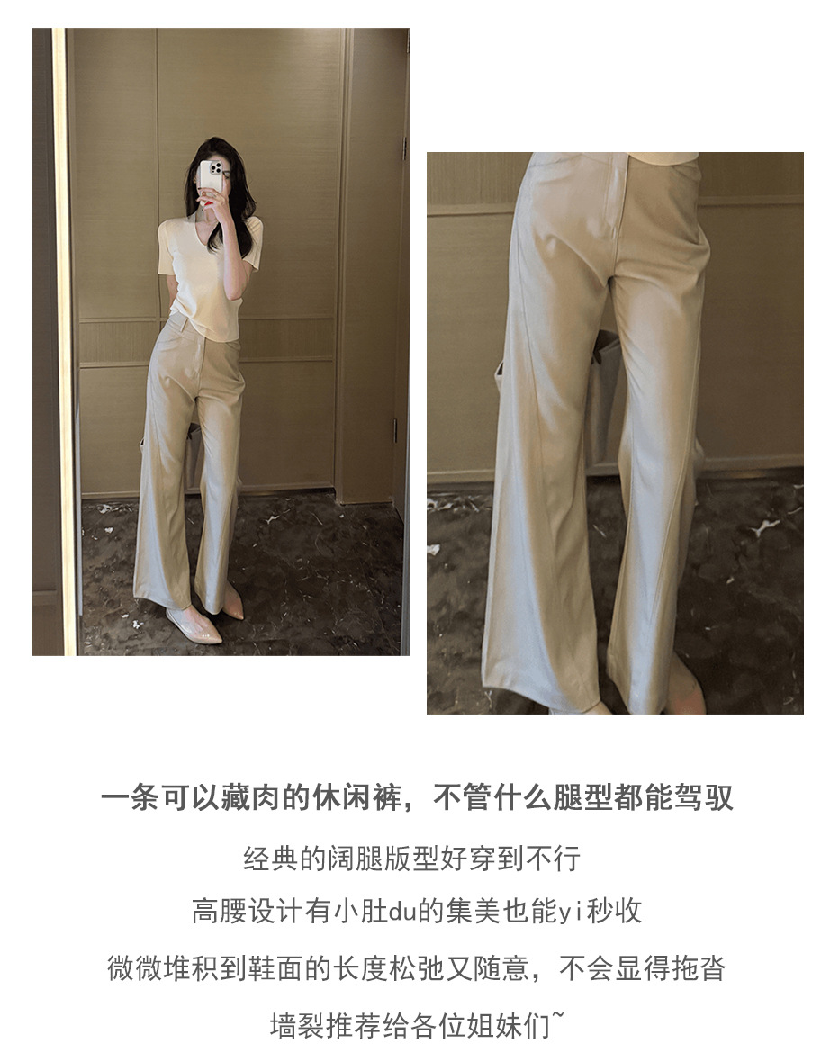 한국식 하이 엔드 센스 마이크로 라 캐주얼 바지 여성 2025 봄 새로운 슬림 핏 슬리밍 하이 웨이스트 루즈 스트레이트 레그 와이드 레그 팬츠