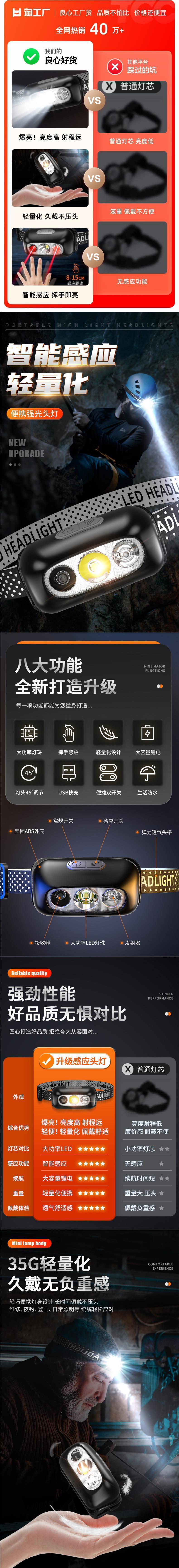 헤드 램프 슈퍼 밝은 긴 내구성 충전 헤드 장착 강한 빛 유도 손전등 LED 야간 낚시 빛 내구성 리튬 배터리