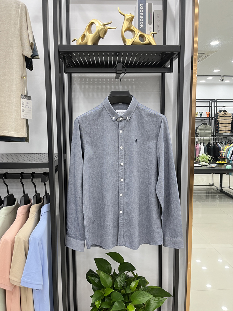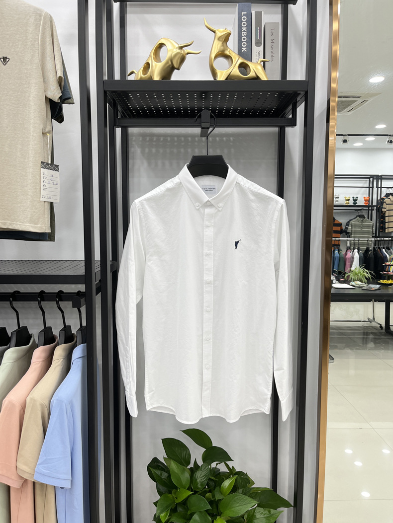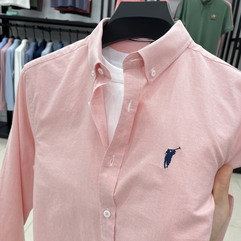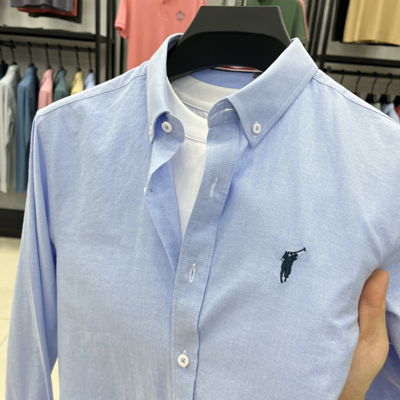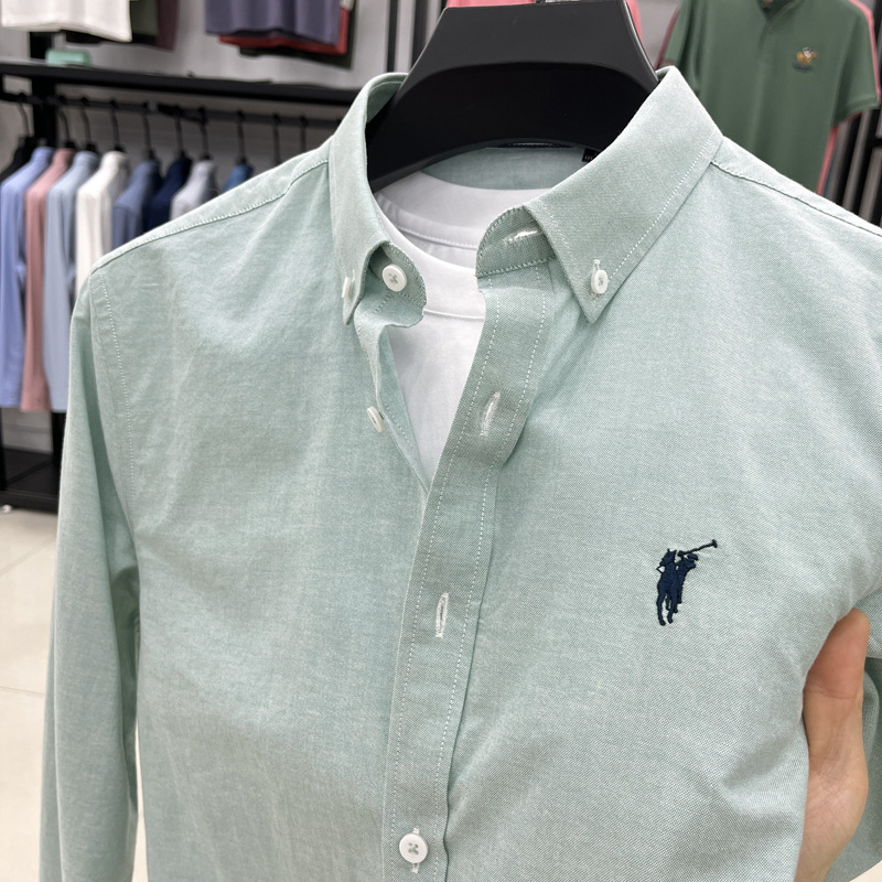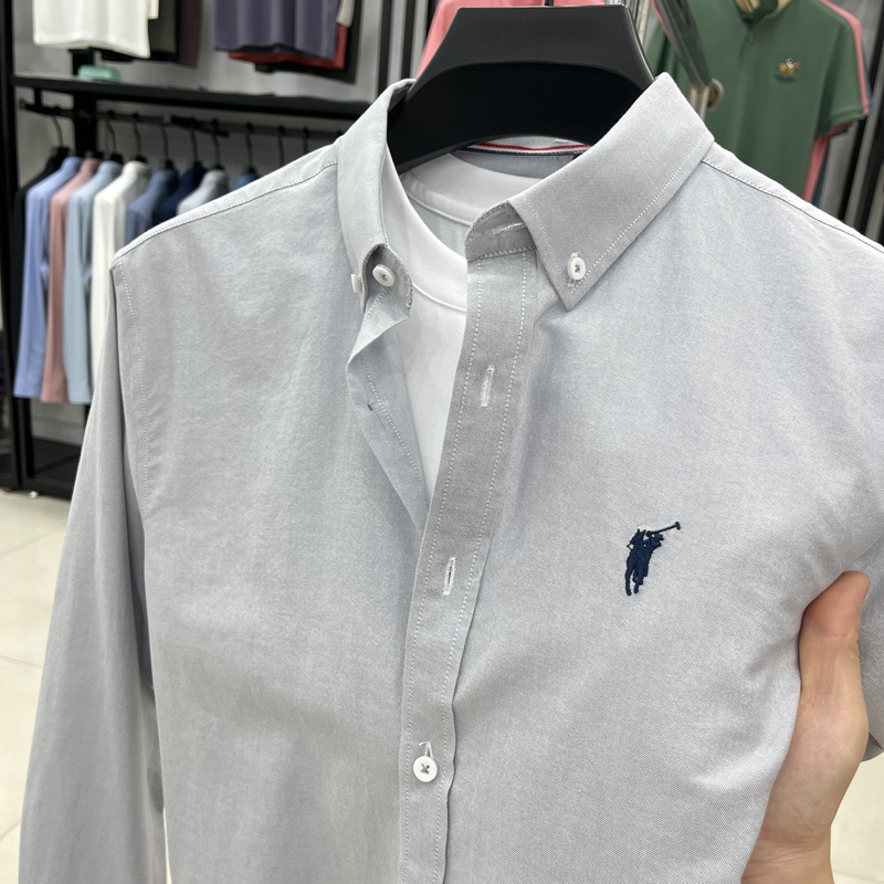 하이 엔드 100 면 남자 긴팔 셔츠 봄 2025 새로운 도착 자수 비즈니스 캐주얼 셔츠 솔리드 컬러 올 매치스토어 가기